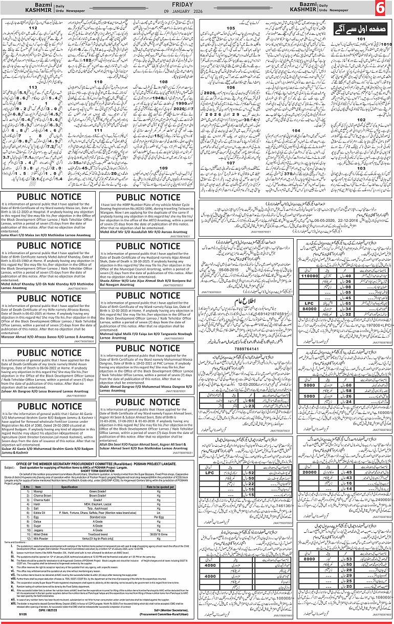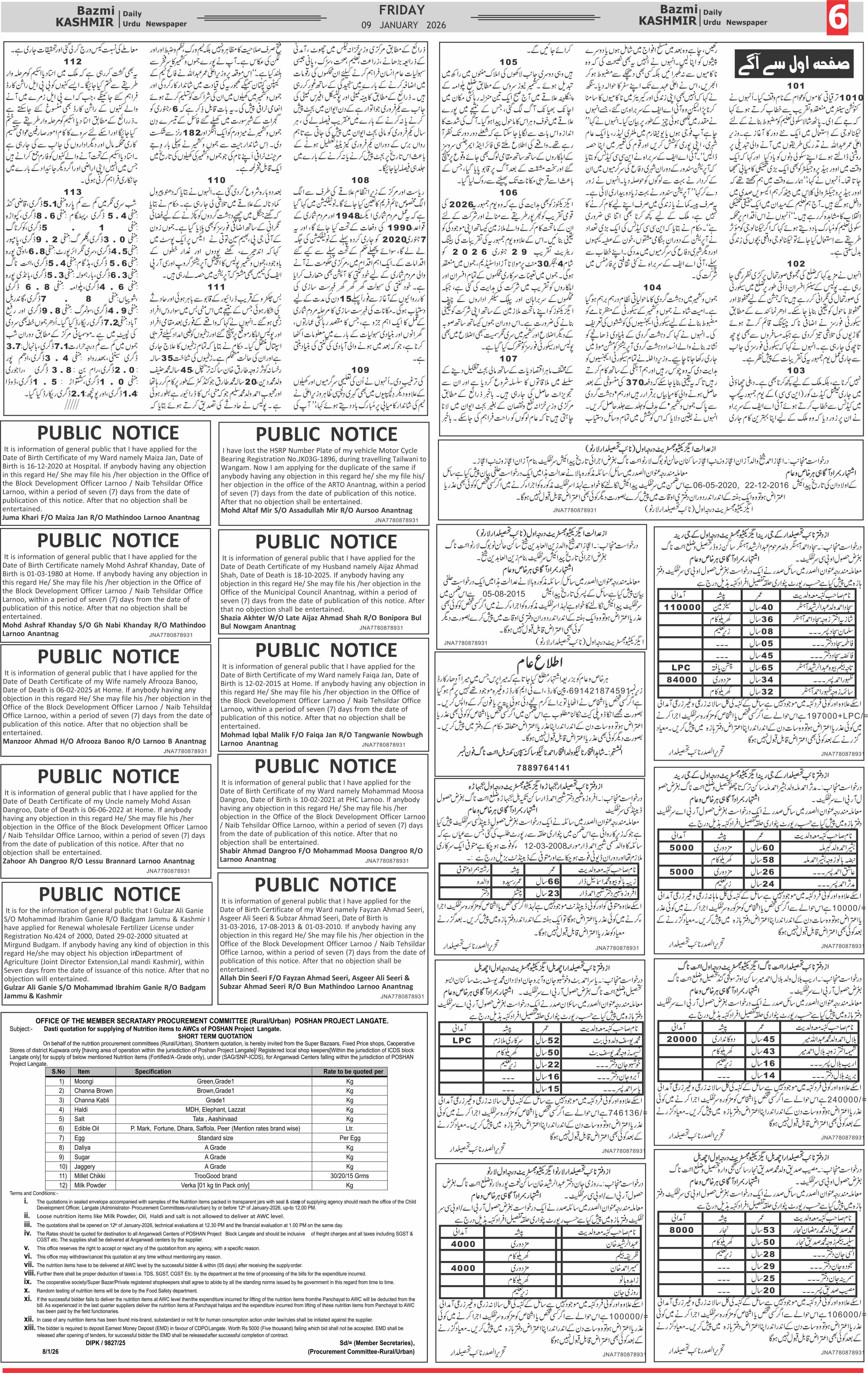 Bazam Kashmir Page: 6 January 09, 2026 << First << 6 >> Last >> Page 1Page 2Page 3Page 4Page 5Page 6Page 7Page 8 × Bazam Kashmir B -6 B -1B -2B -3B -4B -5B -6B -7B -8