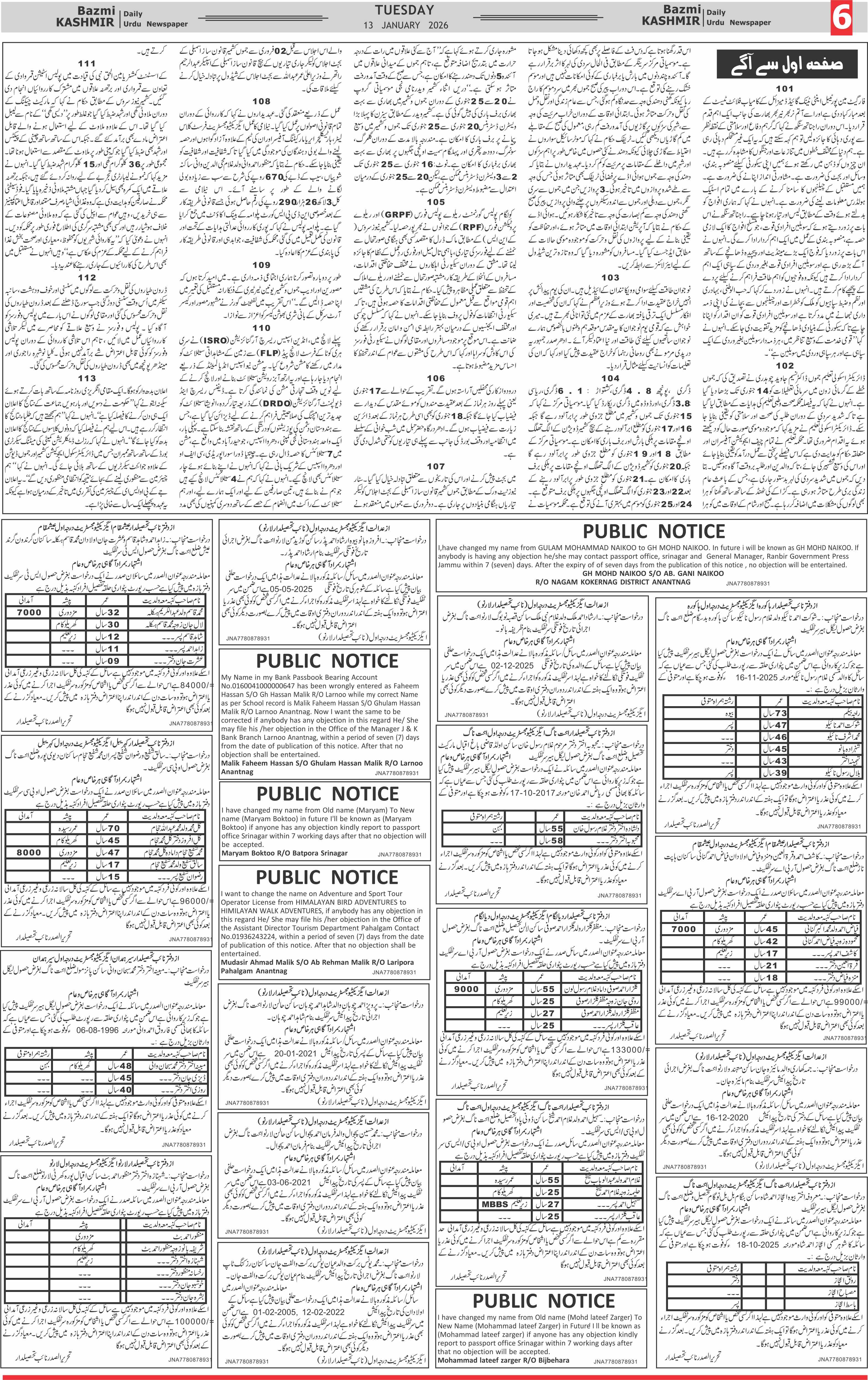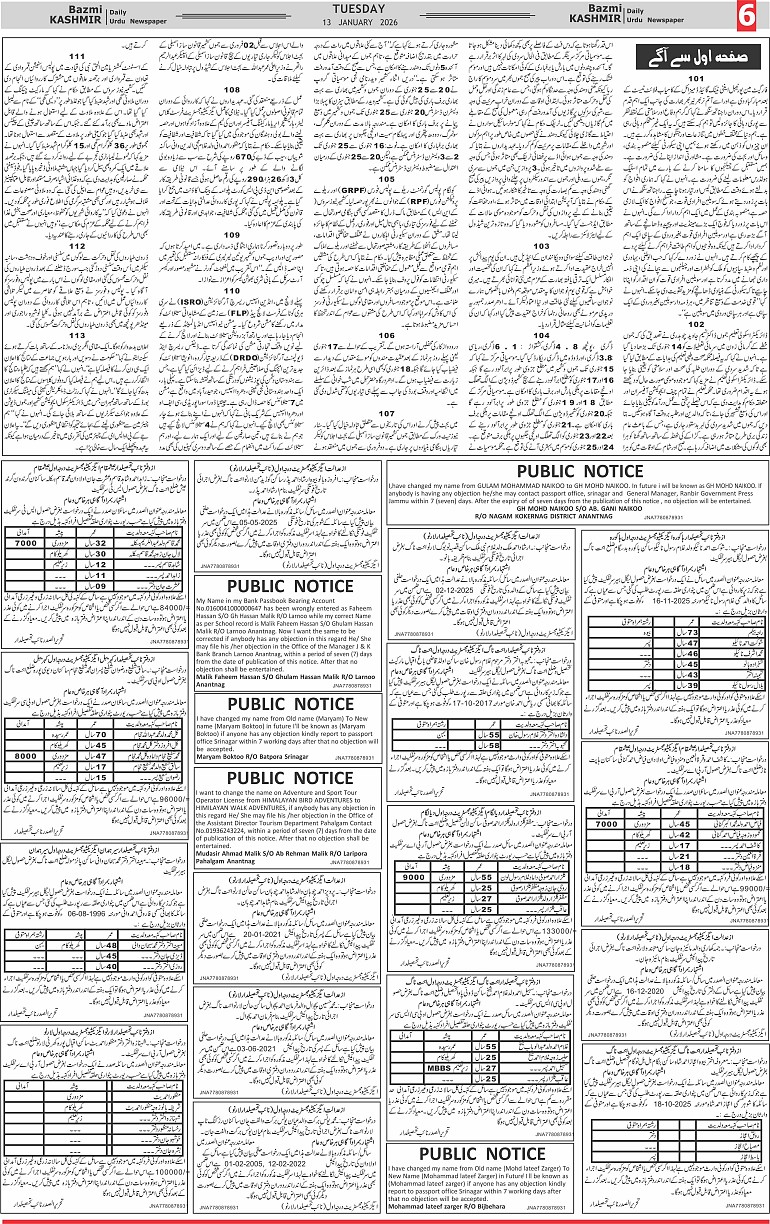 Bazam Kashmir Page: 6 January 13, 2026 << First << 6 >> Last >> Page 1Page 2Page 3Page 4Page 5Page 6Page 7Page 8 × Bazam Kashmir B -6 B -1B -2B -3B -4B -5B -6B -7B -8
