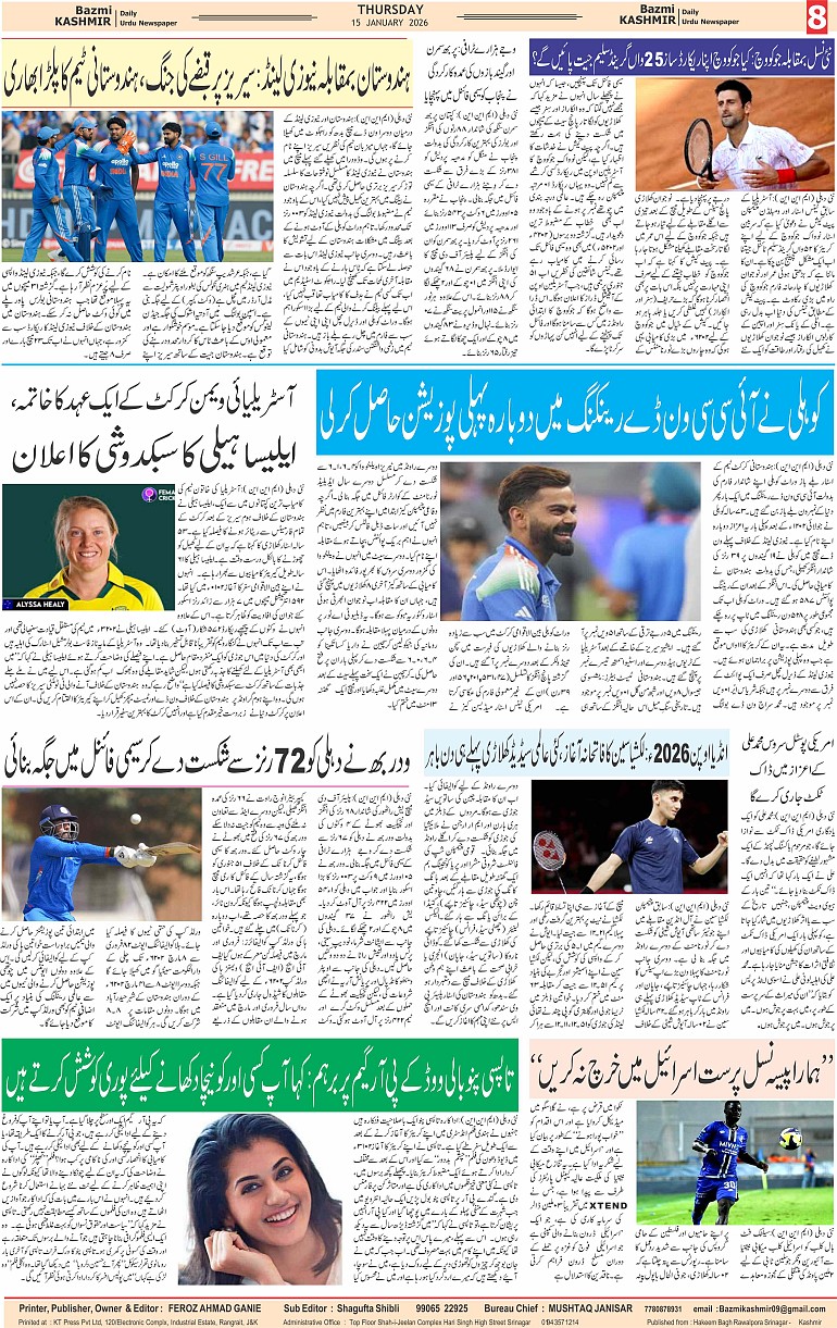 Bazam Kashmir Page: 8 January 15, 2026 << First << 8 >> Last >> Page 1Page 2Page 3Page 4Page 5Page 6Page 7Page 8 × Bazam Kashmir B -8 B -1B -2B -3B -4B -5B -6B -7B -8