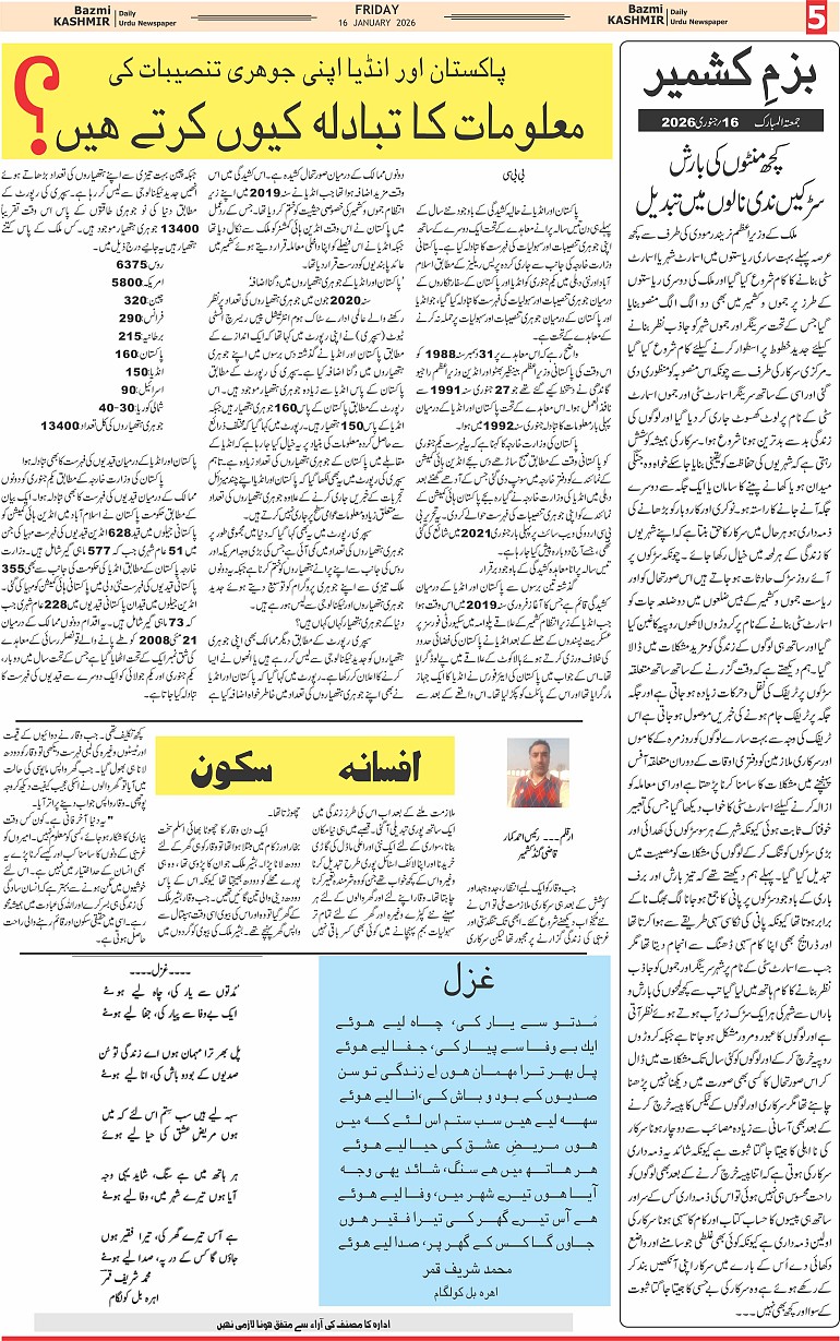 Bazam Kashmir Page: 5 January 16, 2026 << First << 5 >> Last >> Page 1Page 2Page 3Page 4Page 5Page 6Page 7Page 8 × Bazam Kashmir B -5 B -1B -2B -3B -4B -5B -6B -7B -8