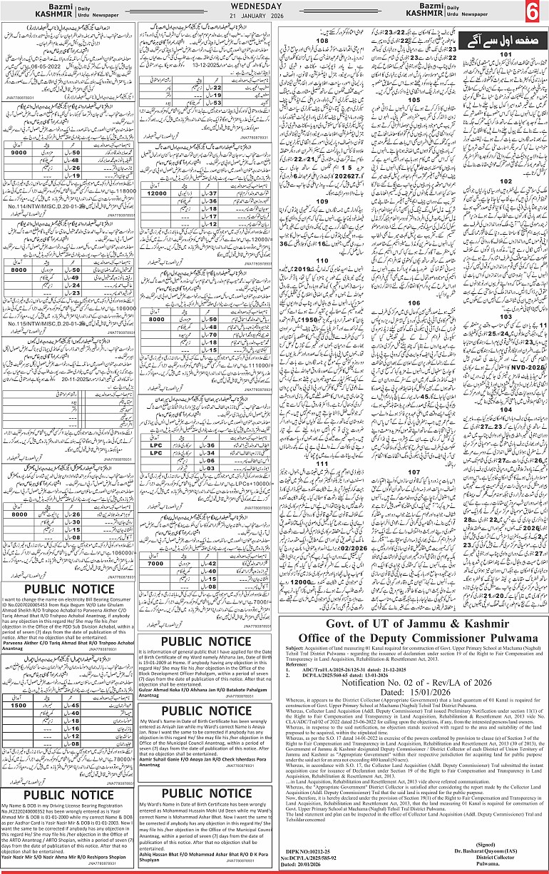 Bazam Kashmir Page: 6 January 21, 2026 << First << 6 >> Last >> Page 1Page 2Page 3Page 4Page 5Page 6Page 7Page 8 × Bazam Kashmir B -6 B -1B -2B -3B -4B -5B -6B -7B -8