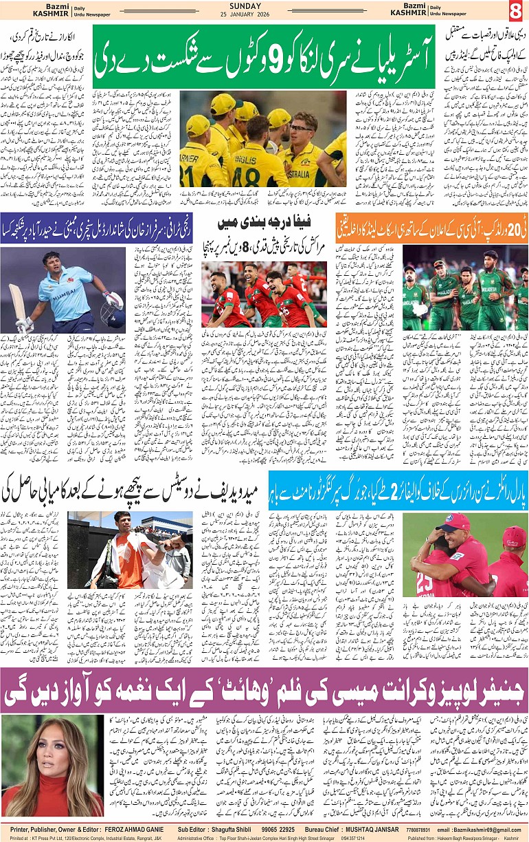 Bazam Kashmir Page: 8 January 25, 2026 << First << 8 >> Last >> Page 1Page 2Page 3Page 4Page 5Page 6Page 7Page 8 × Bazam Kashmir B -8 B -1B -2B -3B -4B -5B -6B -7B -8