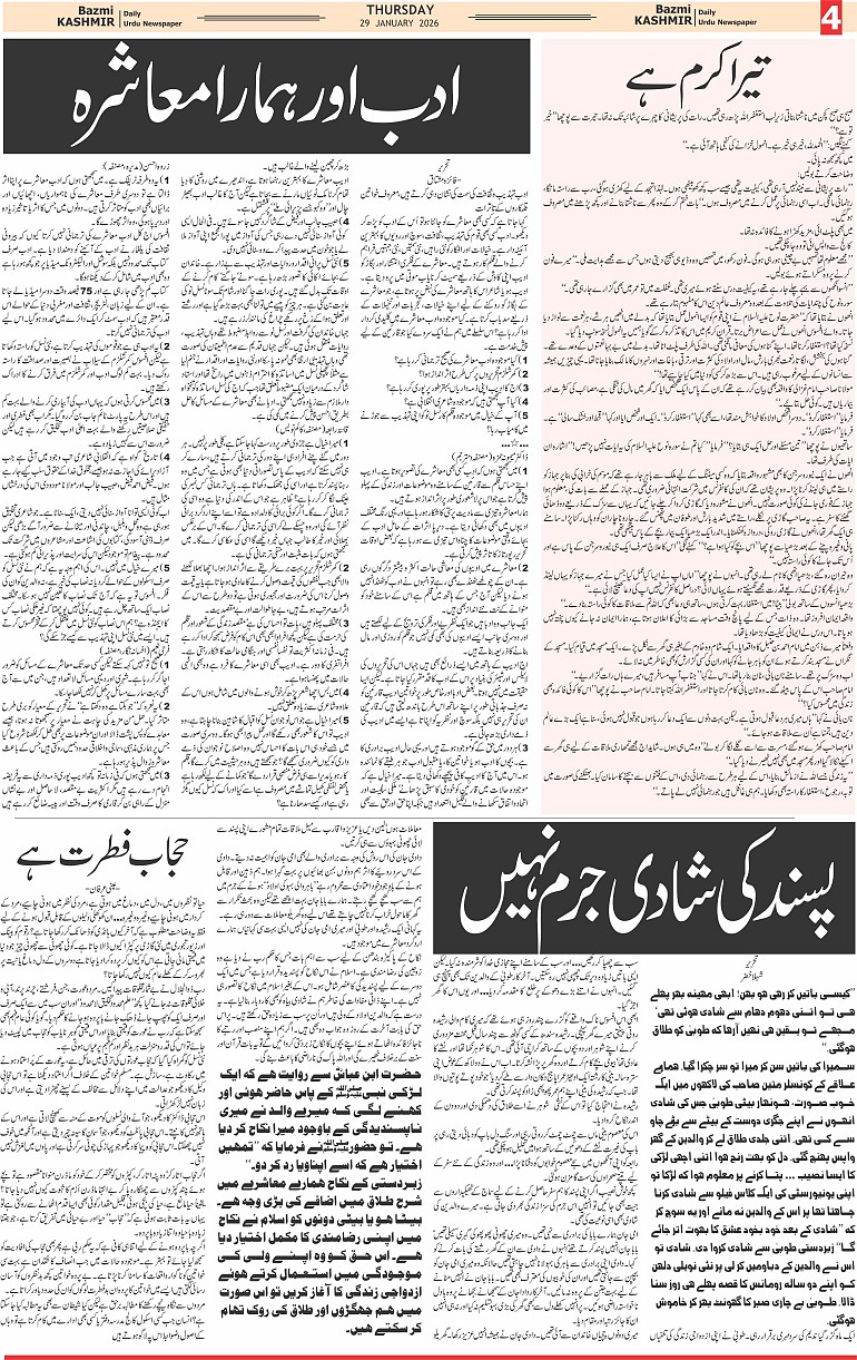 Bazam Kashmir Page: 4 January 29, 2026 << First << 4 >> Last >> Page 1Page 2Page 3Page 4Page 5Page 6Page 7Page 8 × Bazam Kashmir B -4 B -1B -2B -3B -4B -5B -6B -7B -8