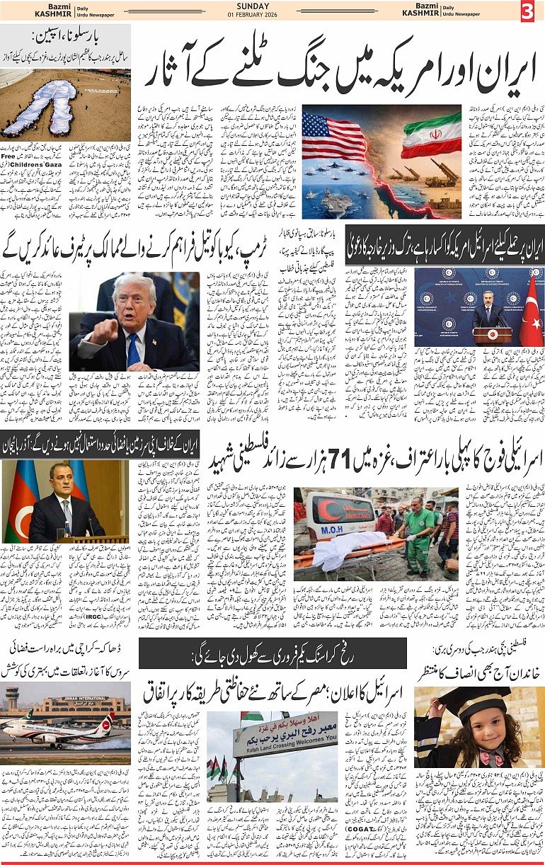 Bazam Kashmir Page: 3 February 01, 2026 << First << 3 >> Last >> Page 1Page 2Page 3Page 4Page 5Page 6Page 7Page 8 × Bazam Kashmir B -3 B -1B -2B -3B -4B -5B -6B -7B -8