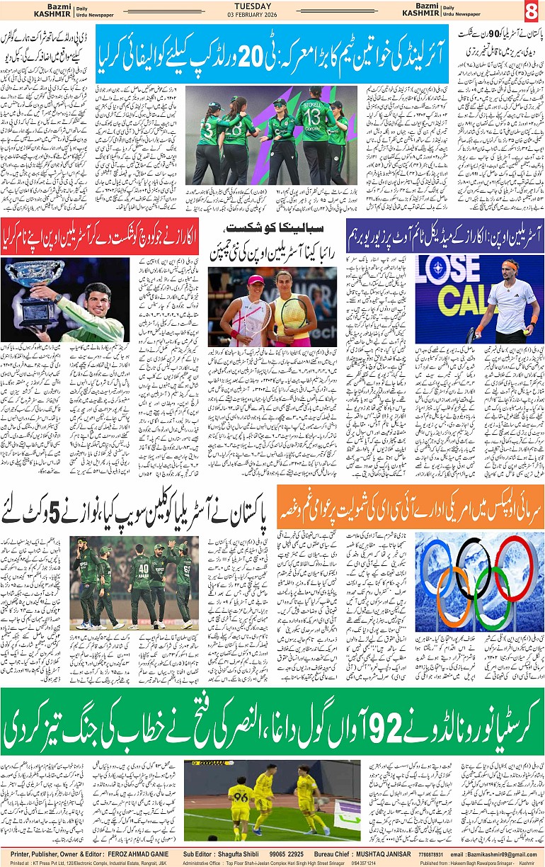 Bazam Kashmir Page: 8 February 03, 2026 << First << 8 >> Last >> Page 1Page 2Page 3Page 4Page 5Page 6Page 7Page 8 × Bazam Kashmir B -8 B -1B -2B -3B -4B -5B -6B -7B -8