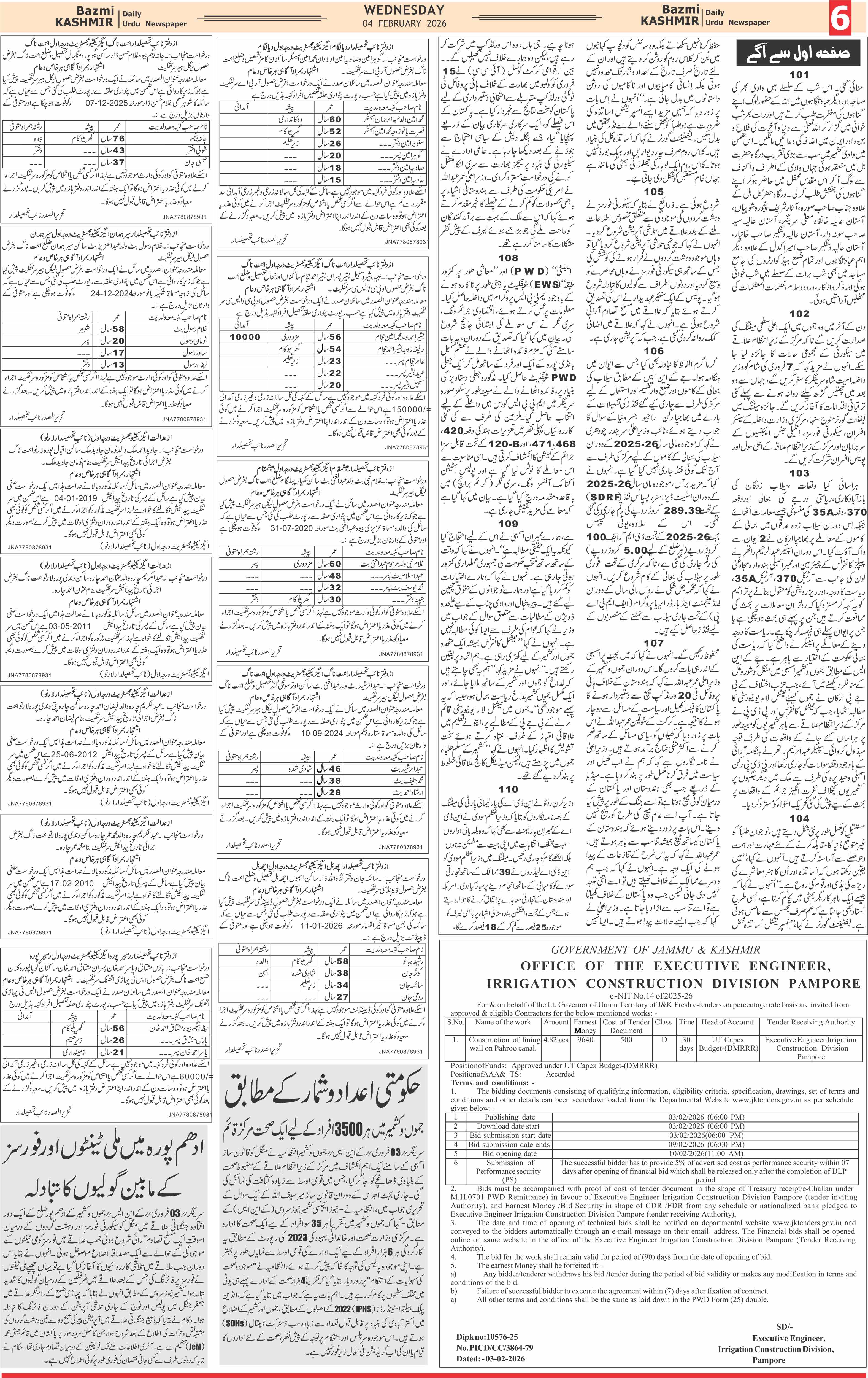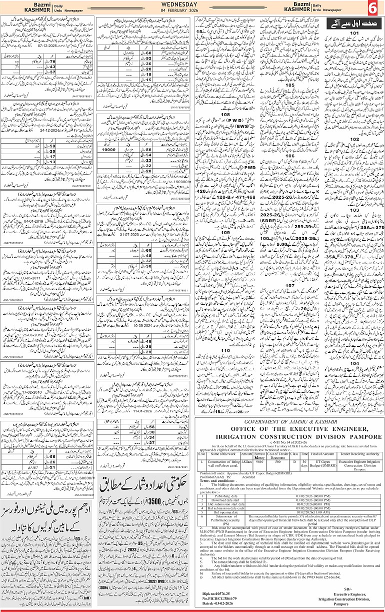 Bazam Kashmir Page: 6 February 04, 2026 << First << 6 >> Last >> Page 1Page 2Page 3Page 4Page 5Page 6Page 7Page 8 × Bazam Kashmir B -6 B -1B -2B -3B -4B -5B -6B -7B -8