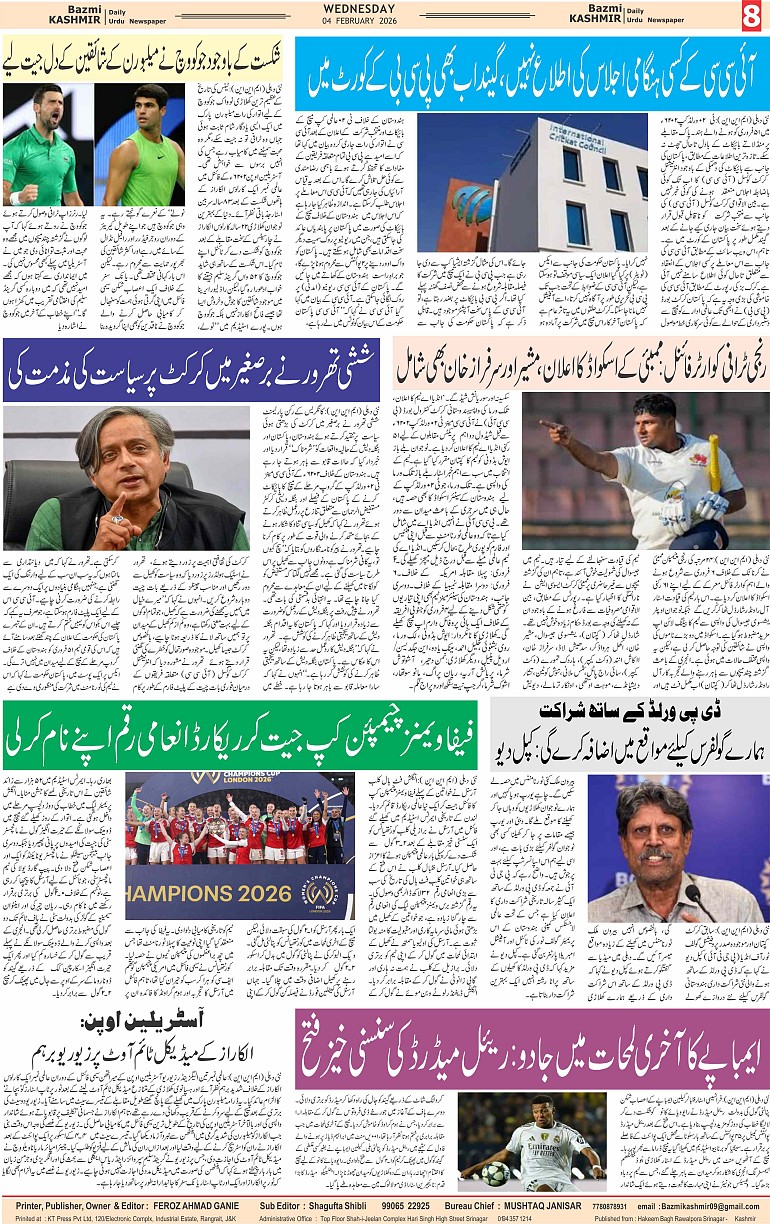 Bazam Kashmir Page: 8 February 04, 2026 << First << 8 >> Last >> Page 1Page 2Page 3Page 4Page 5Page 6Page 7Page 8 × Bazam Kashmir B -8 B -1B -2B -3B -4B -5B -6B -7B -8