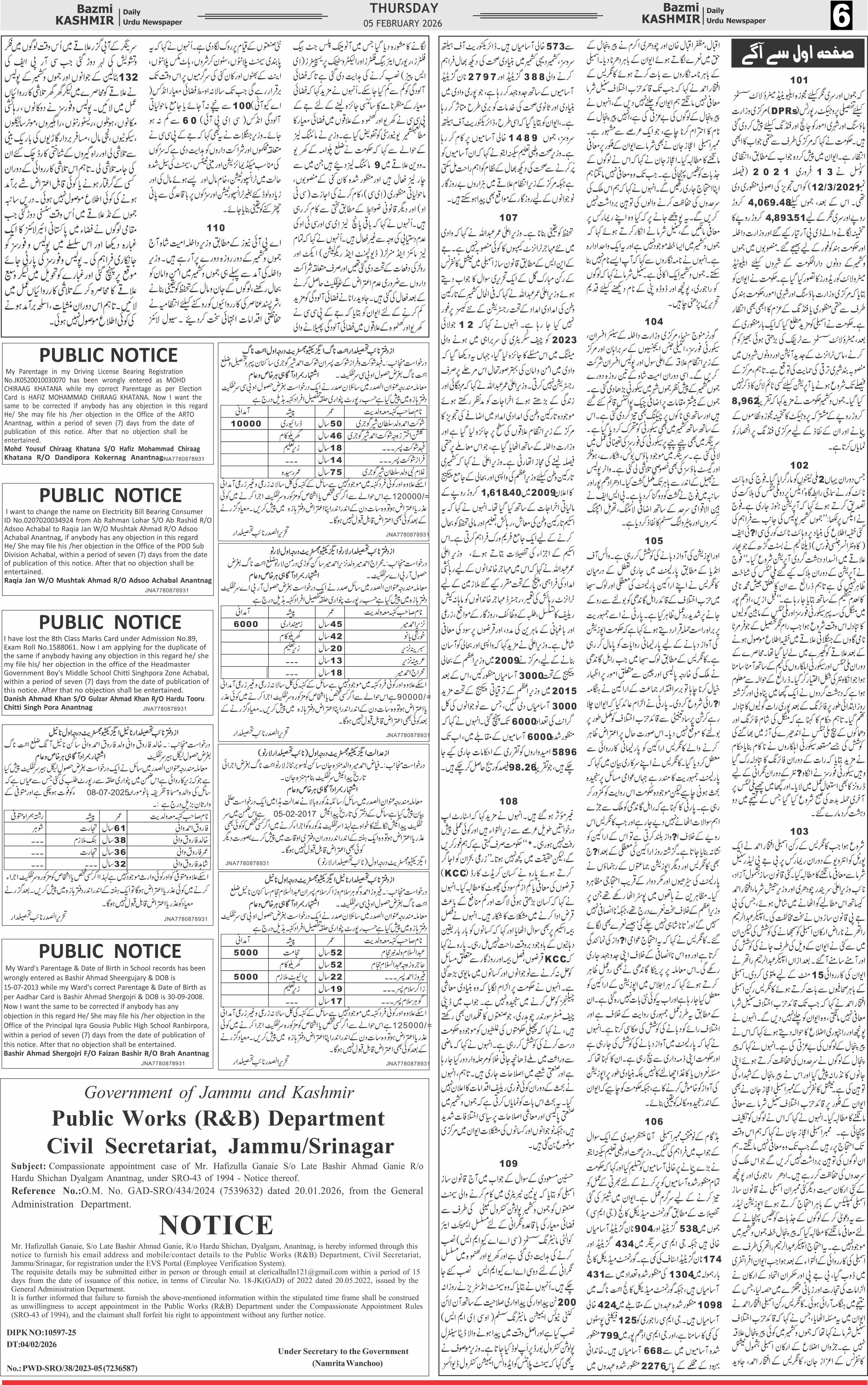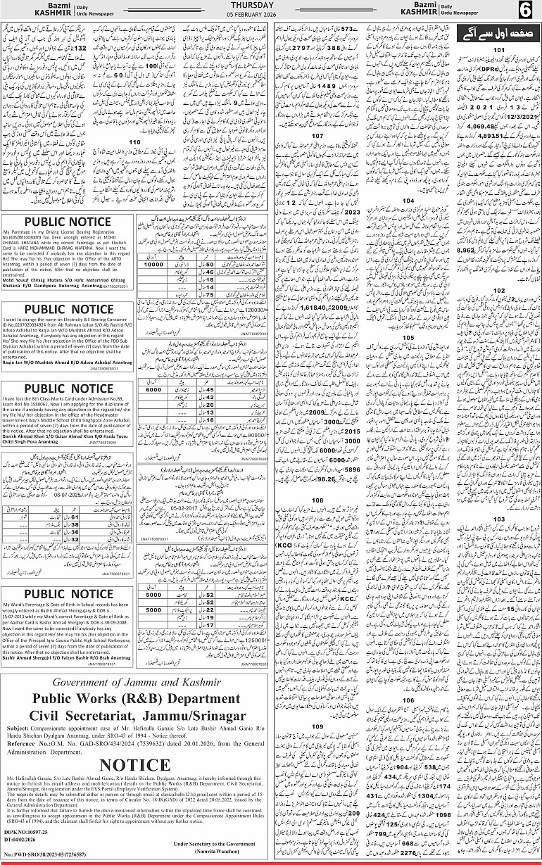 Bazam Kashmir Page: 6 February 05, 2026 << First << 6 >> Last >> Page 1Page 2Page 3Page 4Page 5Page 6Page 7 × Bazam Kashmir B -6 B -1B -2B -3B -4B -5B -6B -8