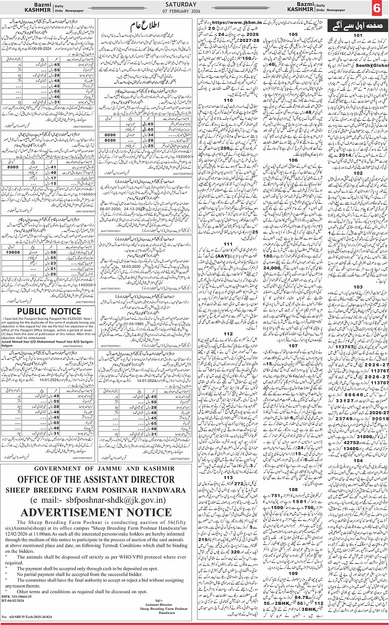 Bazam Kashmir Page: 6 February 07, 2026 << First << 6 >> Last >> Page 1Page 2Page 3Page 4Page 5Page 6Page 7Page 8 × Bazam Kashmir B -6 B -1B -2B -3B -4B -5B -6B -7B -8