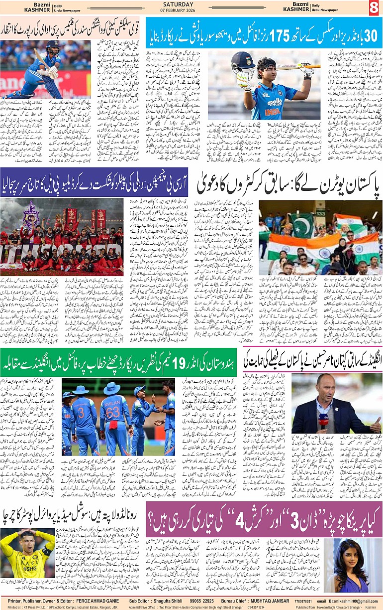 Bazam Kashmir Page: 8 February 07, 2026 << First << 8 >> Last >> Page 1Page 2Page 3Page 4Page 5Page 6Page 7Page 8 × Bazam Kashmir B -8 B -1B -2B -3B -4B -5B -6B -7B -8