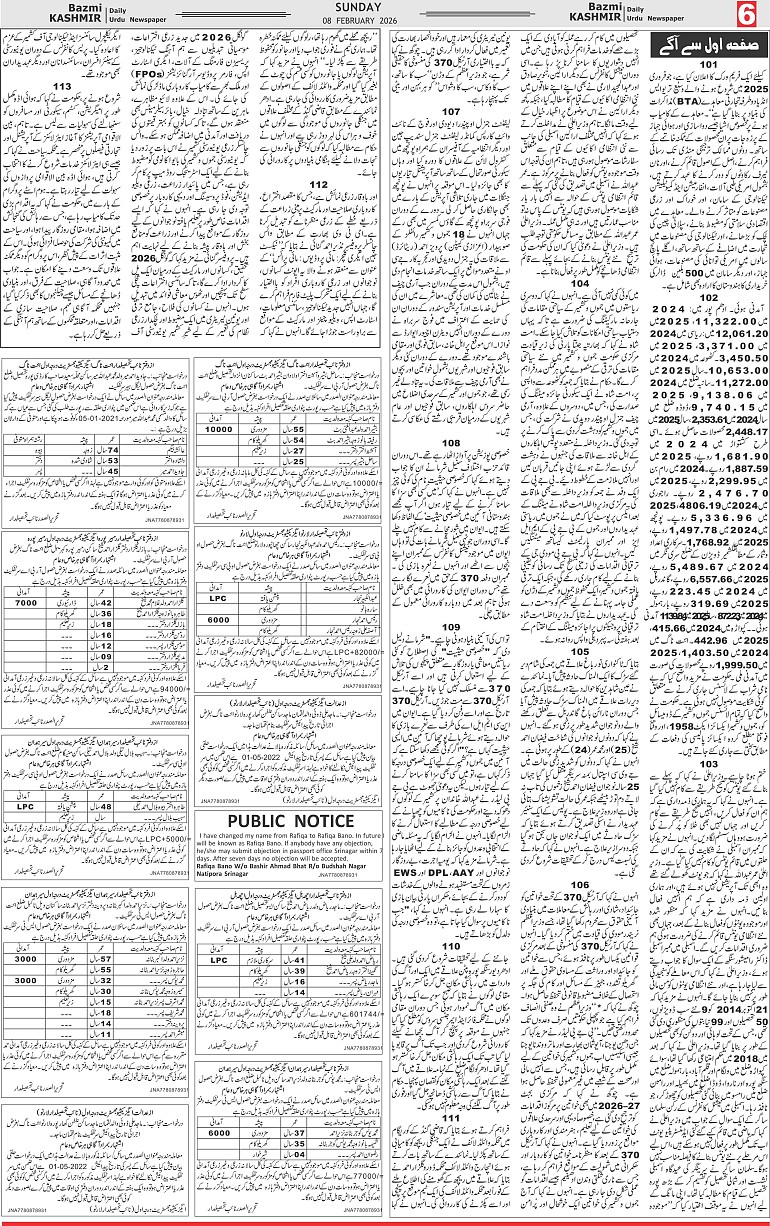 Bazam Kashmir Page: 6 February 08, 2026 << First << 6 >> Last >> Page 1Page 2Page 3Page 4Page 5Page 6Page 7Page 8 × Bazam Kashmir B -6 B -1B -2B -3B -4B -5B -6B -7B -8