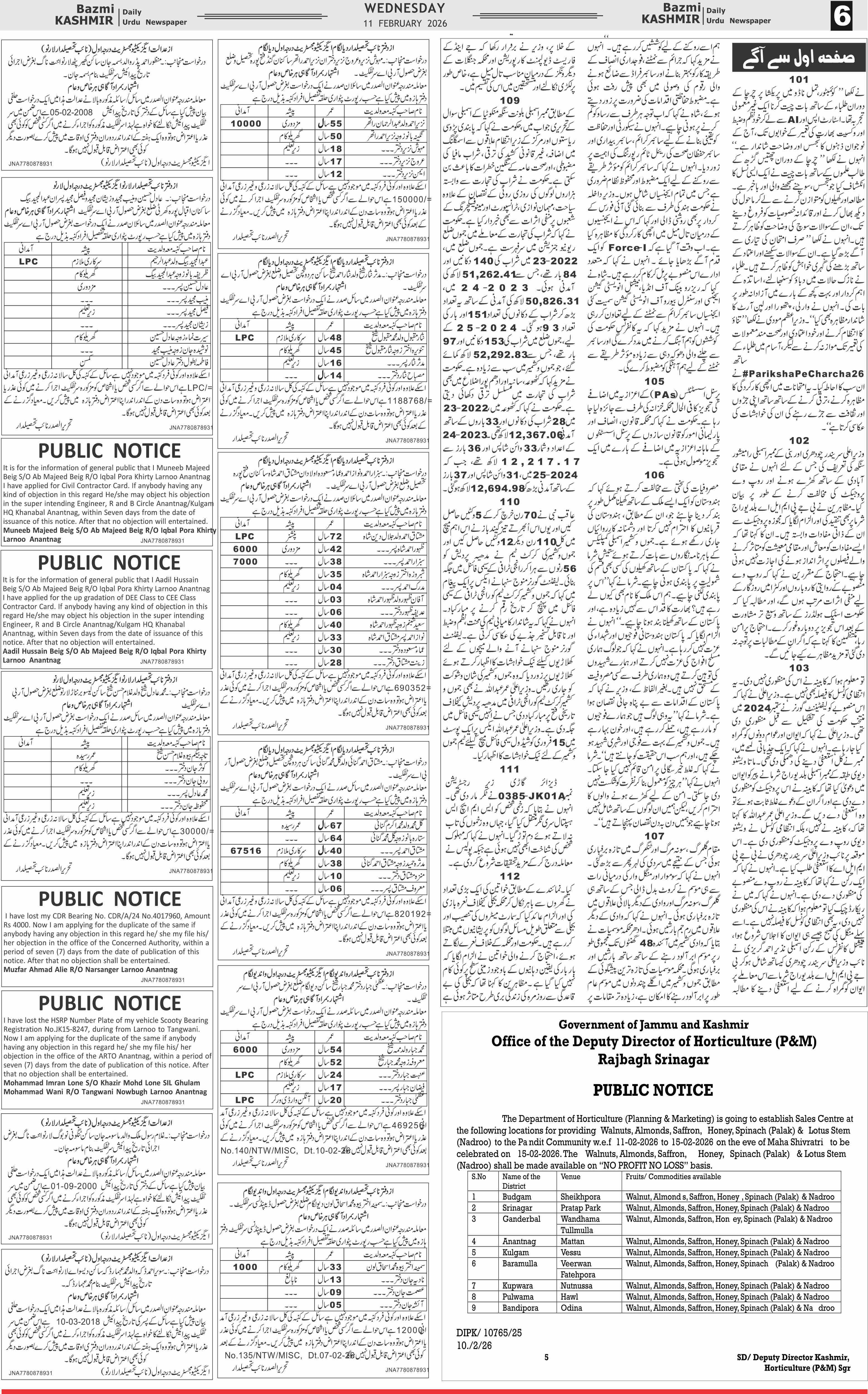 Bazam Kashmir Page: 6 February 11, 2026 << First << 6 >> Last >> Page 1Page 2Page 3Page 4Page 5Page 6Page 7Page 8 × Bazam Kashmir B -6 B -1B -2B -3B -4B -5B -6B -7B -8