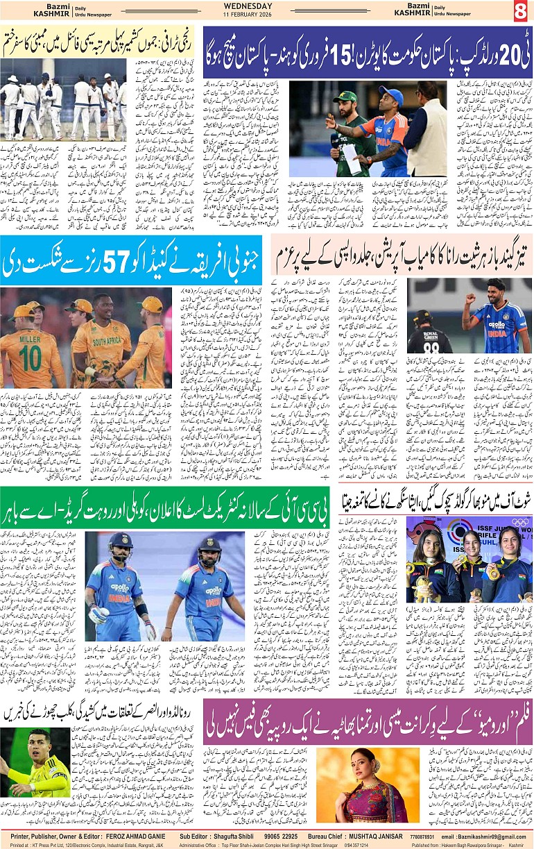 Bazam Kashmir Page: 8 February 11, 2026 << First << 8 >> Last >> Page 1Page 2Page 3Page 4Page 5Page 6Page 7Page 8 × Bazam Kashmir B -8 B -1B -2B -3B -4B -5B -6B -7B -8