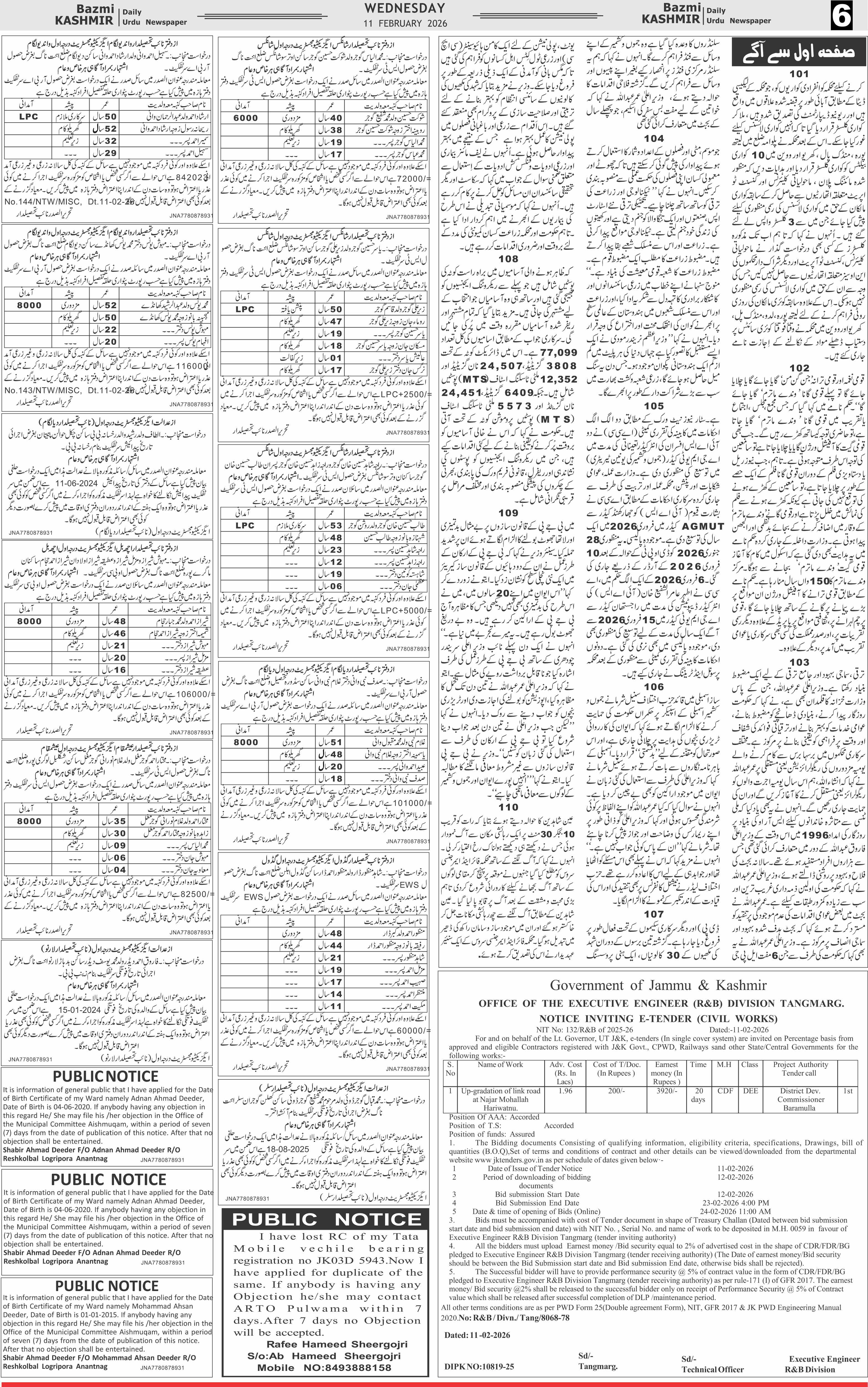 Bazam Kashmir Page: 6 February 12, 2026 << First << 6 >> Last >> Page 1Page 2Page 3Page 4Page 5Page 6Page 7Page 8 × Bazam Kashmir B -6 B -1B -2B -3B -4B -5B -6B -7B -8
