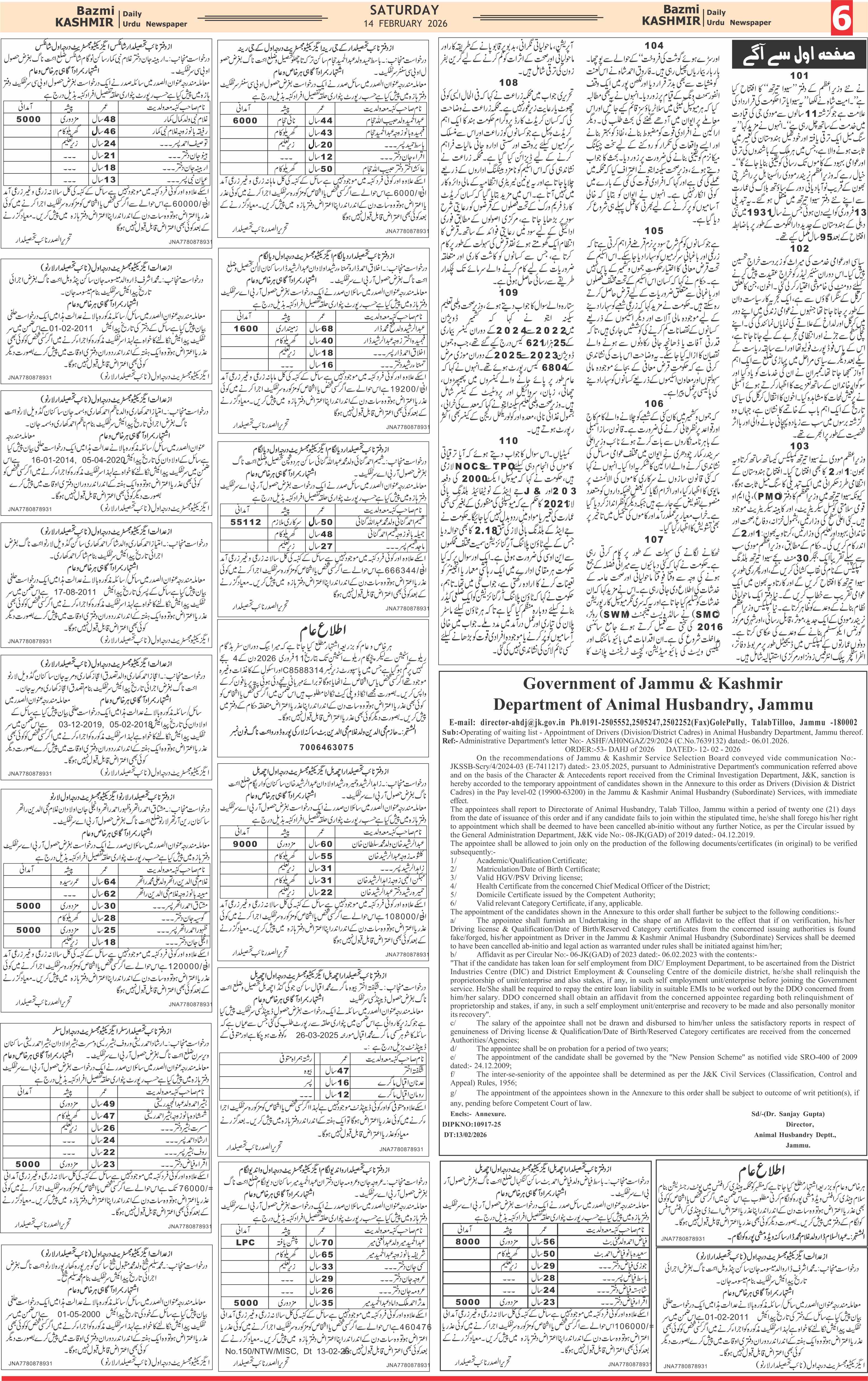 Bazam Kashmir Page: 6 February 14, 2026 << First << 6 >> Last >> Page 1Page 2Page 3Page 4Page 5Page 6Page 7Page 8 × Bazam Kashmir B -6 B -1B -2B -3B -4B -5B -6B -7B -8