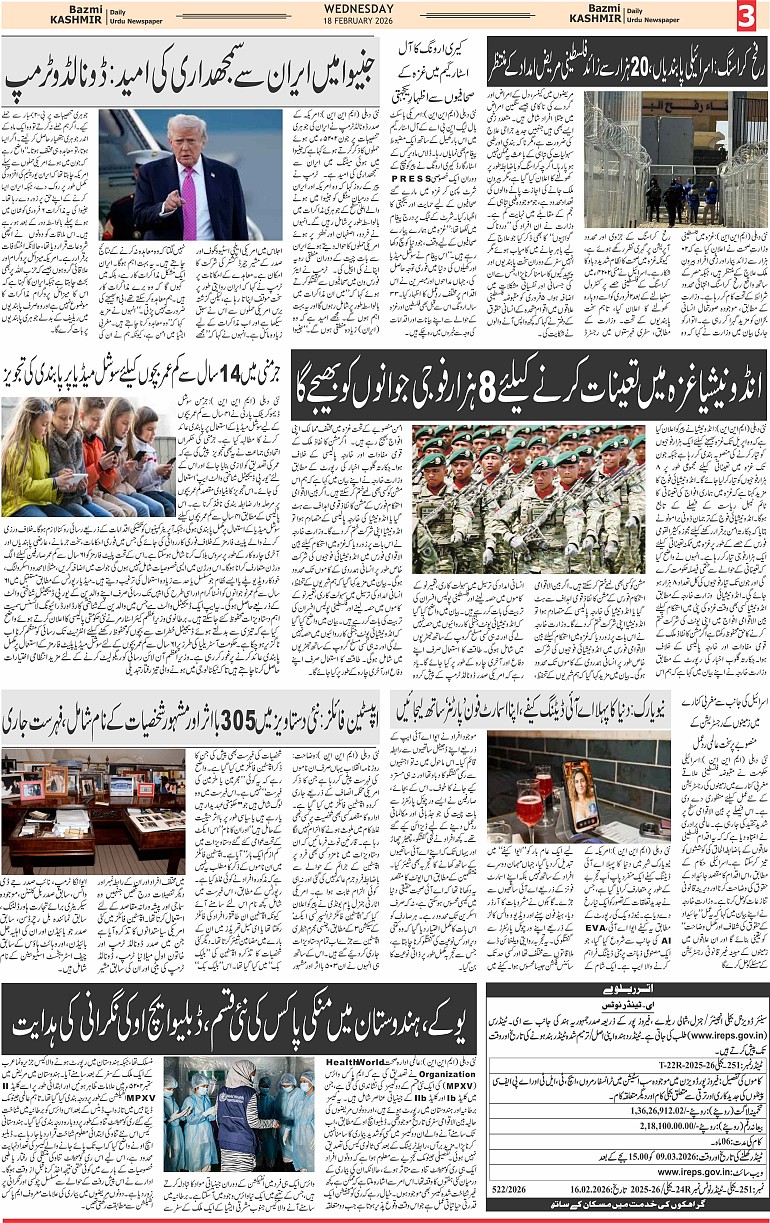 Bazam Kashmir Page: 3 February 18, 2026 << First << 3 >> Last >> Page 1Page 2Page 3Page 4Page 5Page 6Page 7Page 8 × Bazam Kashmir B -3 B -1B -2B -3B -4B -5B -6B -7B -8