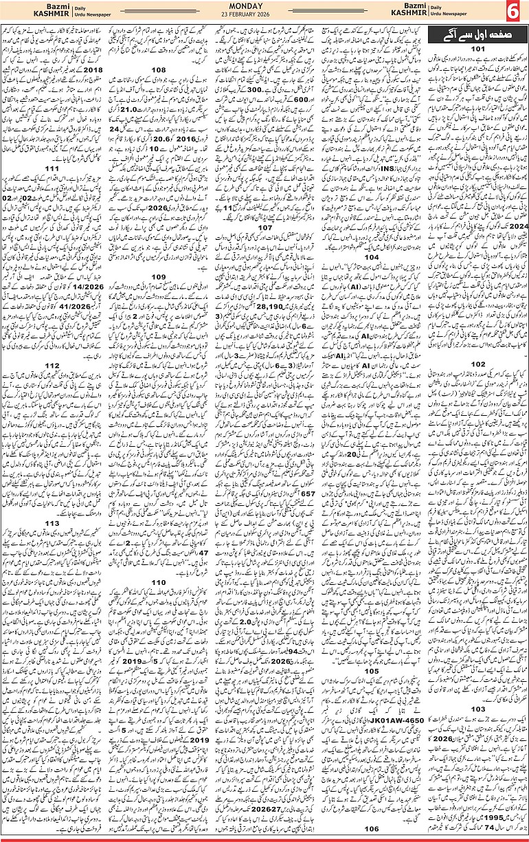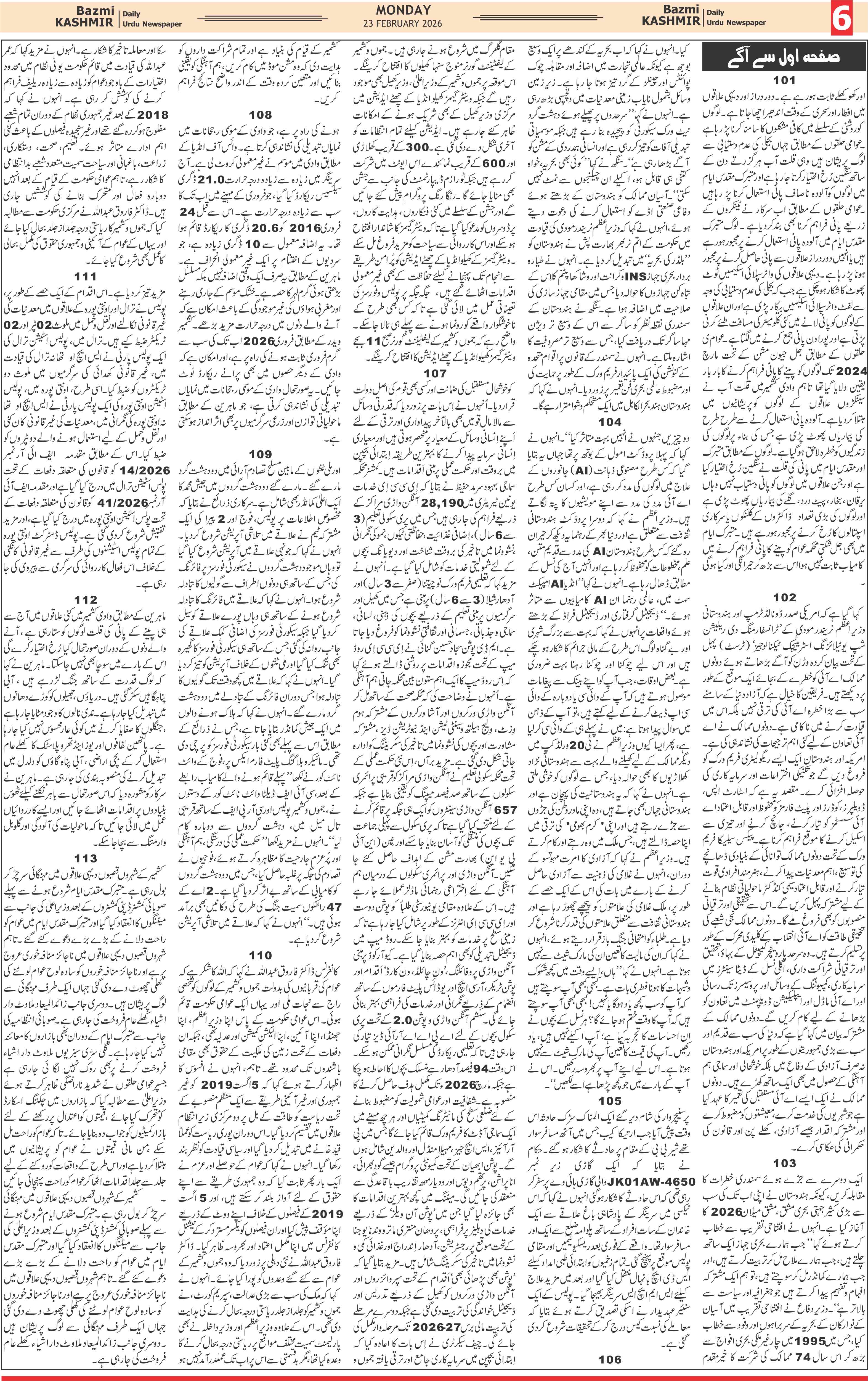 Bazam Kashmir Page: 6 February 23, 2026 << First << 6 >> Last >> Page 1Page 2Page 3Page 4Page 5Page 6Page 7Page 8 × Bazam Kashmir B -6 B -1B -2B -3B -4B -5B -6B -7B -8