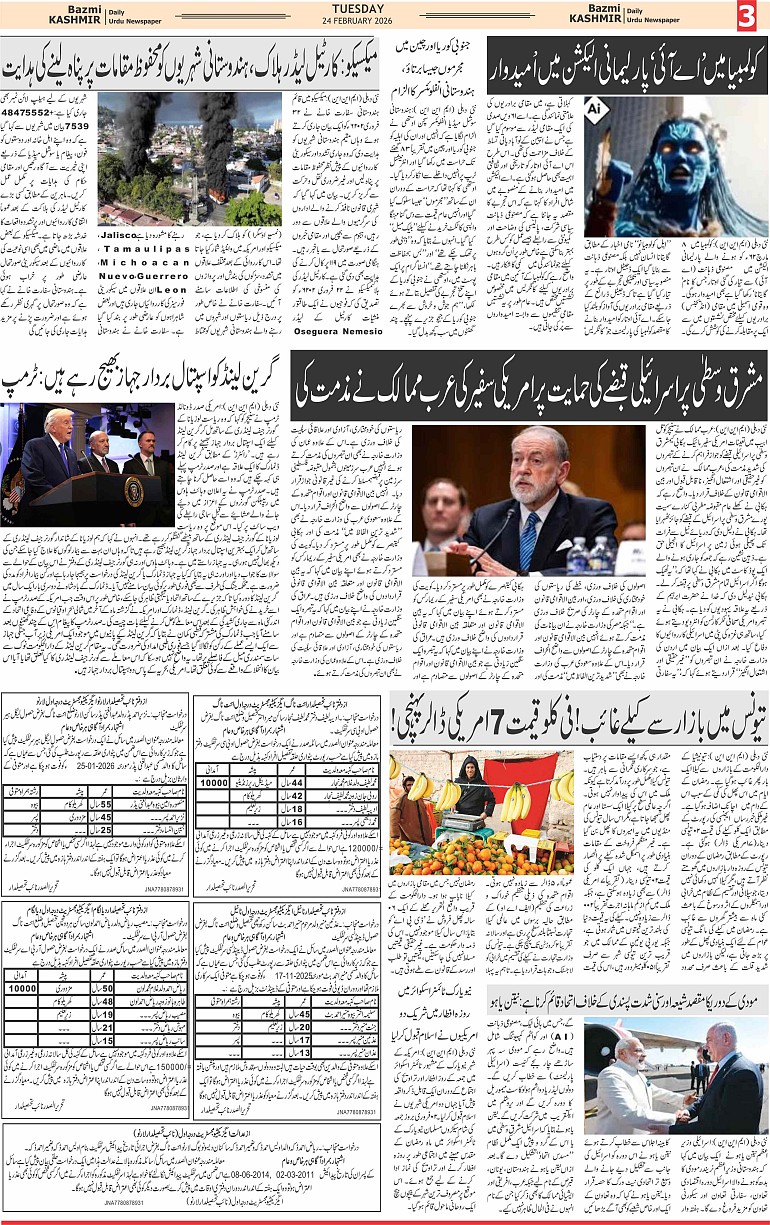 Bazam Kashmir Page: 3 February 24, 2026 << First << 3 >> Last >> Page 1Page 2Page 3Page 4Page 5Page 6Page 7Page 8 × Bazam Kashmir B -3 B -1B -2B -3B -4B -5B -6B -7B -8