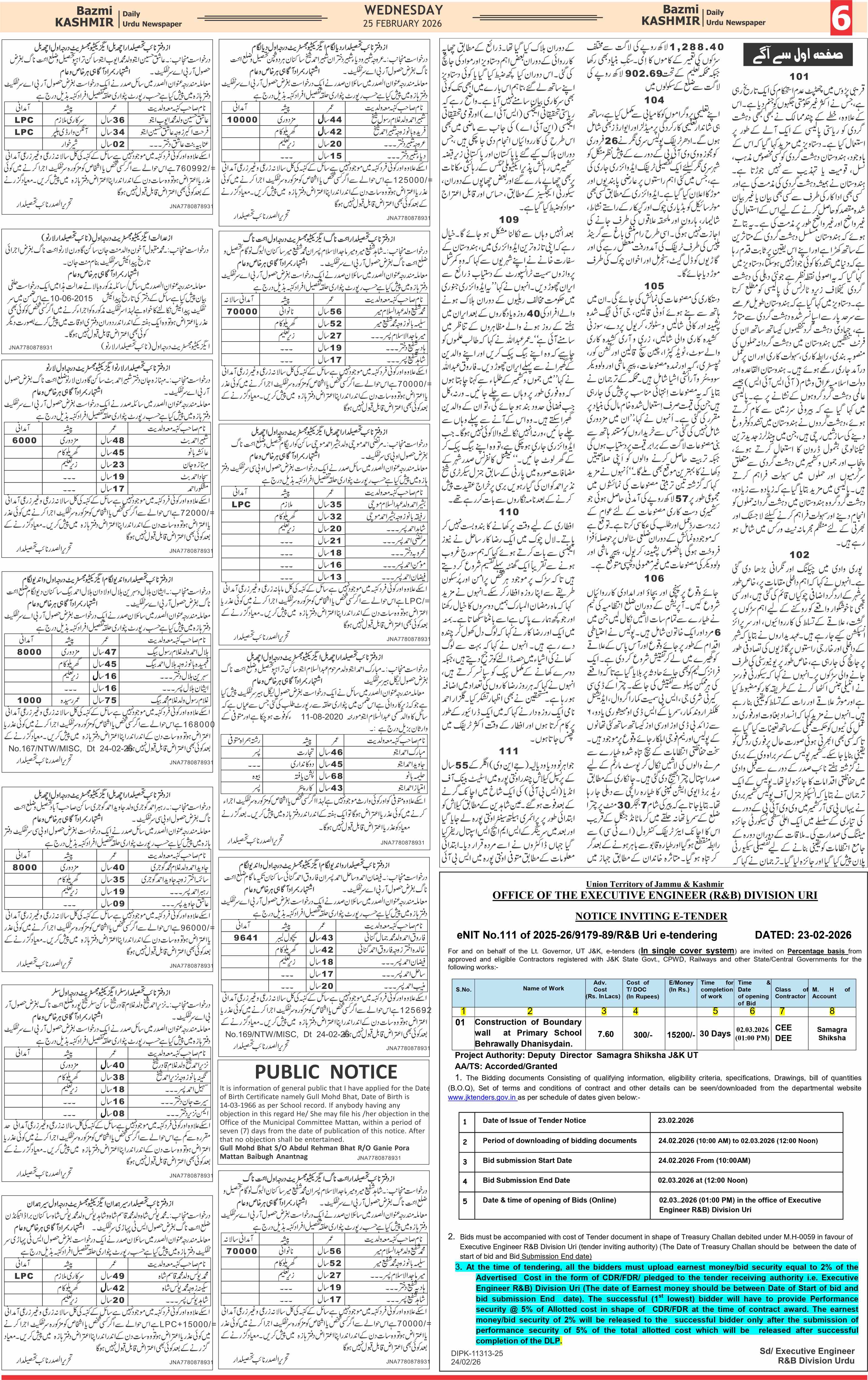Bazam Kashmir Page: 6 February 25, 2026 << First << 6 >> Last >> Page 1Page 2Page 3Page 4Page 5Page 6Page 7Page 8 × Bazam Kashmir B -6 B -1B -2B -3B -4B -5B -6B -7B -8