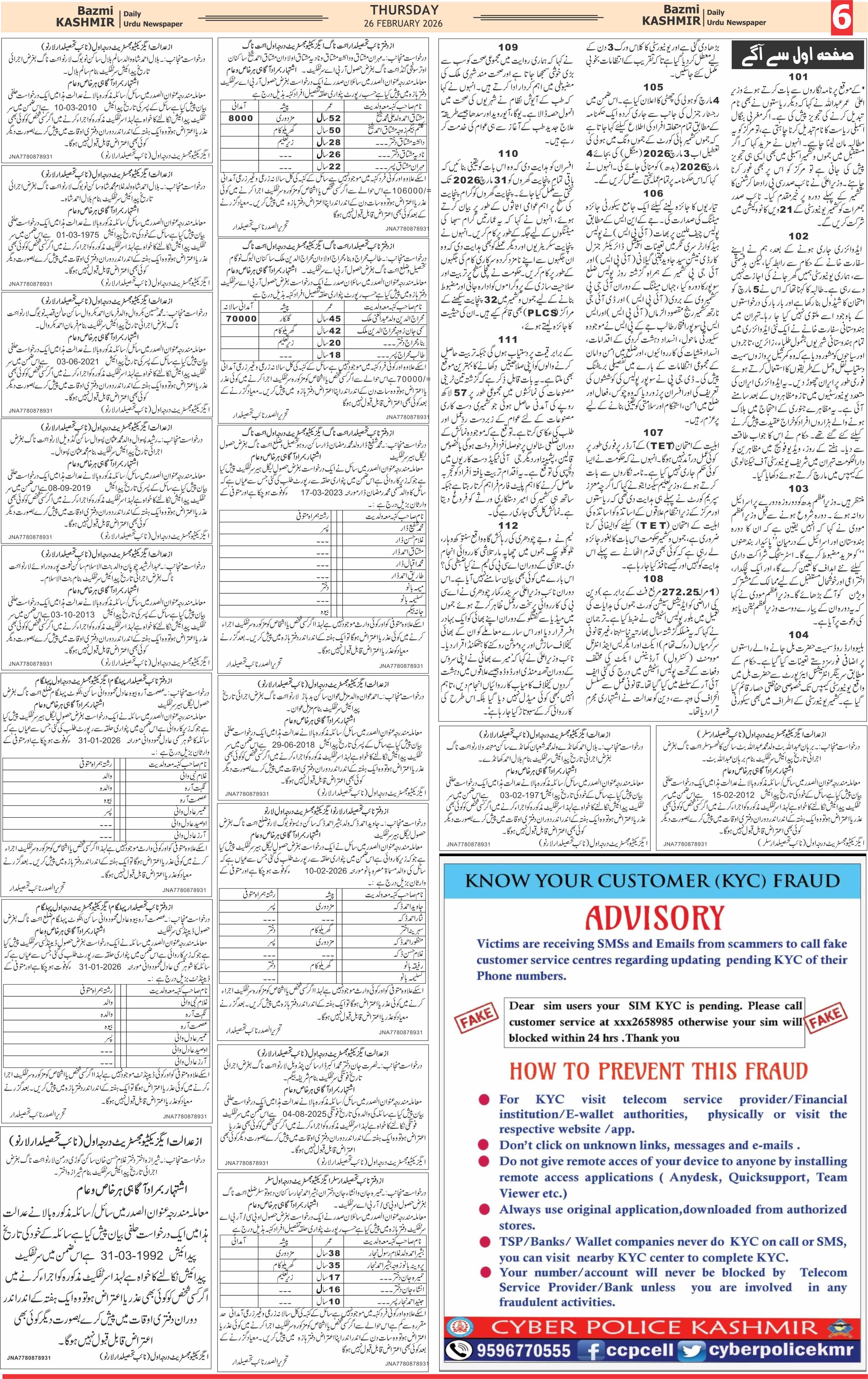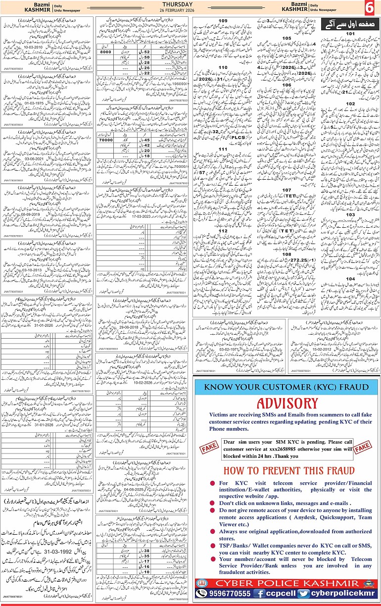 Bazam Kashmir Page: 6 February 26, 2026 << First << 6 >> Last >> Page 1Page 2Page 3Page 4Page 5Page 6Page 7Page 8 × Bazam Kashmir B -6 B -1B -2B -3B -4B -5B -6B -7B -8