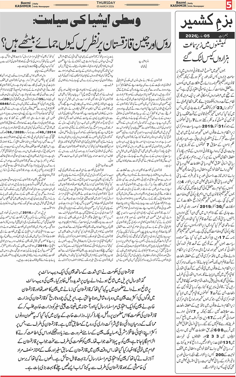 Bazam Kashmir Page: 5 March 05, 2026 << First << 5 >> Last >> Page 1Page 2Page 3Page 4Page 5Page 6Page 7Page 8 × Bazam Kashmir B -5 B -1B -2B -3B -4B -5B -6B -7B -8