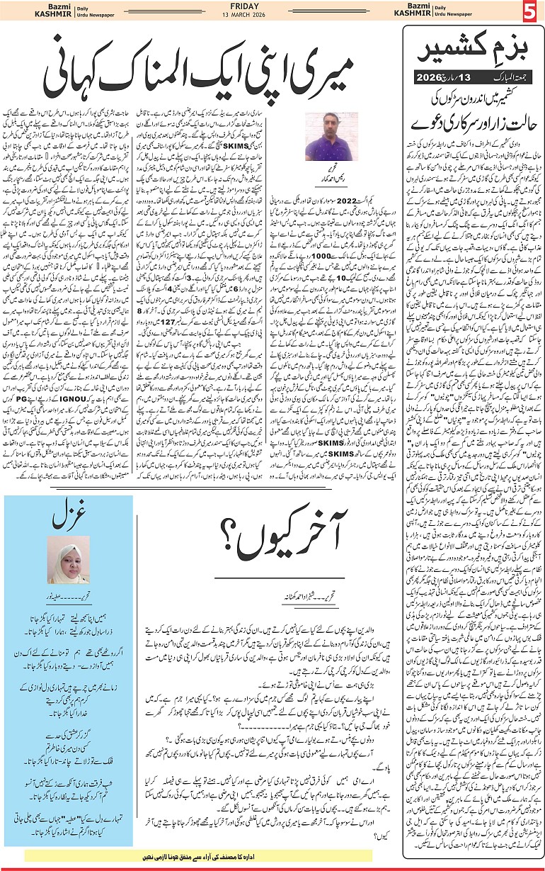 Bazam Kashmir Page: 5 March 13, 2026 << First << 5 >> Last >> Page 1Page 2Page 3Page 4Page 5Page 6Page 7Page 8 × Bazam Kashmir B -5 B -1B -2B -3B -4B -5B -6B -7B -8