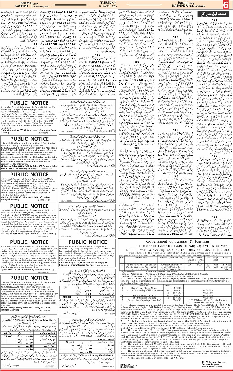 Bazam Kashmir Page: 6 March 17, 2026 << First << 6 >> Last >> Page 1Page 2Page 3Page 4Page 5Page 6Page 7Page 8 × Bazam Kashmir B -6 B -1B -2B -3B -4B -5B -6B -7B -8