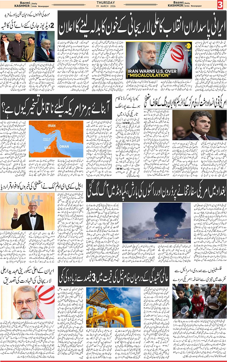 Bazam Kashmir Page: 3 March 19, 2026 << First << 3 >> Last >> Page 1Page 2Page 3Page 4Page 5Page 6Page 7Page 8 × Bazam Kashmir B -3 B -1B -2B -3B -4B -5B -6B -7B -8