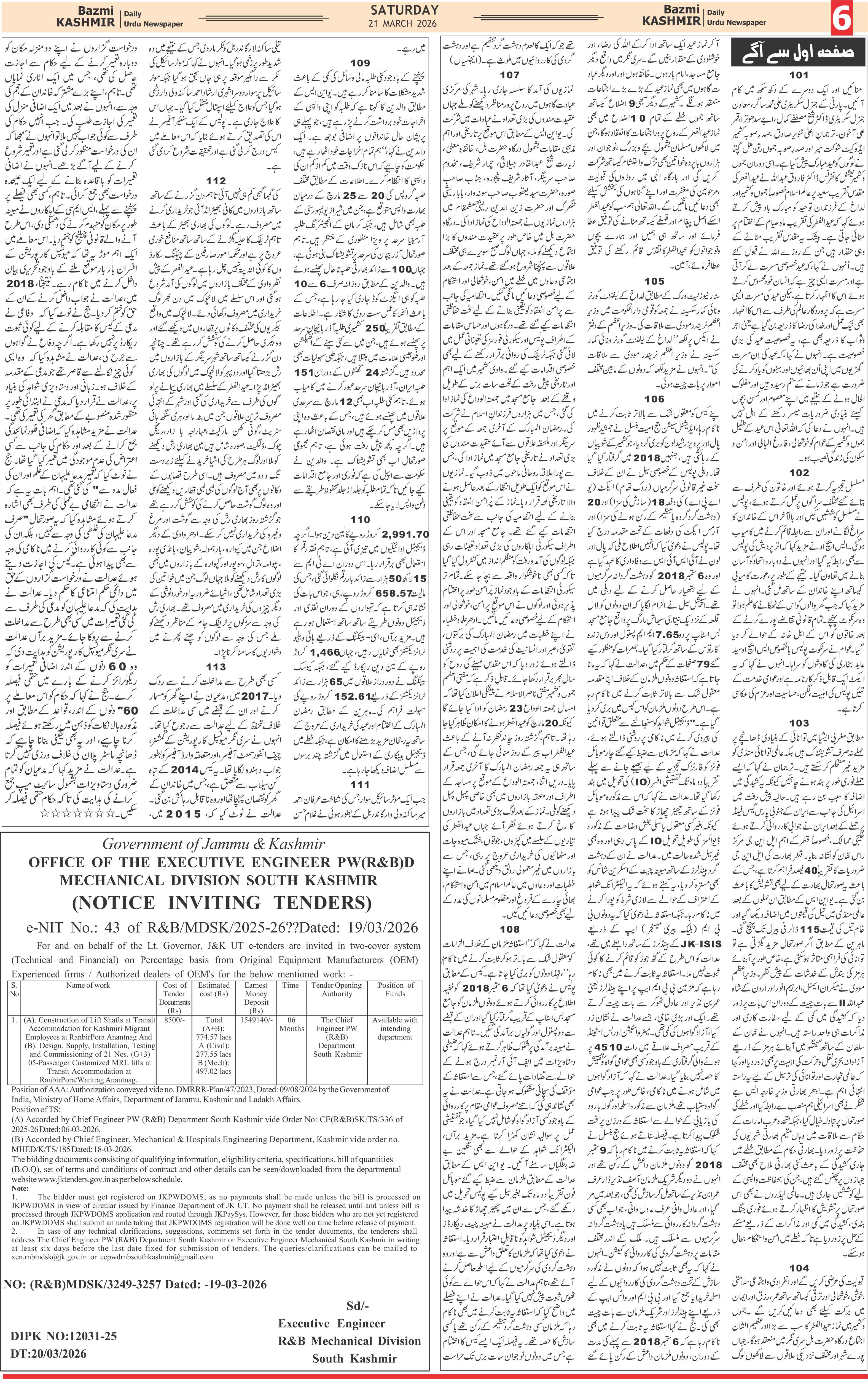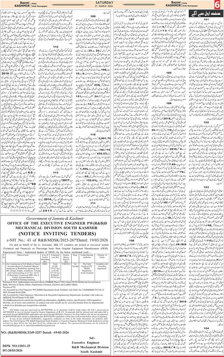 Bazam Kashmir Page: 6 March 21, 2026 << First << 6 >> Last >> Page 1Page 2Page 3Page 4Page 5Page 6Page 7Page 8 × Bazam Kashmir B -6 B -1B -2B -3B -4B -5B -6B -7B -8