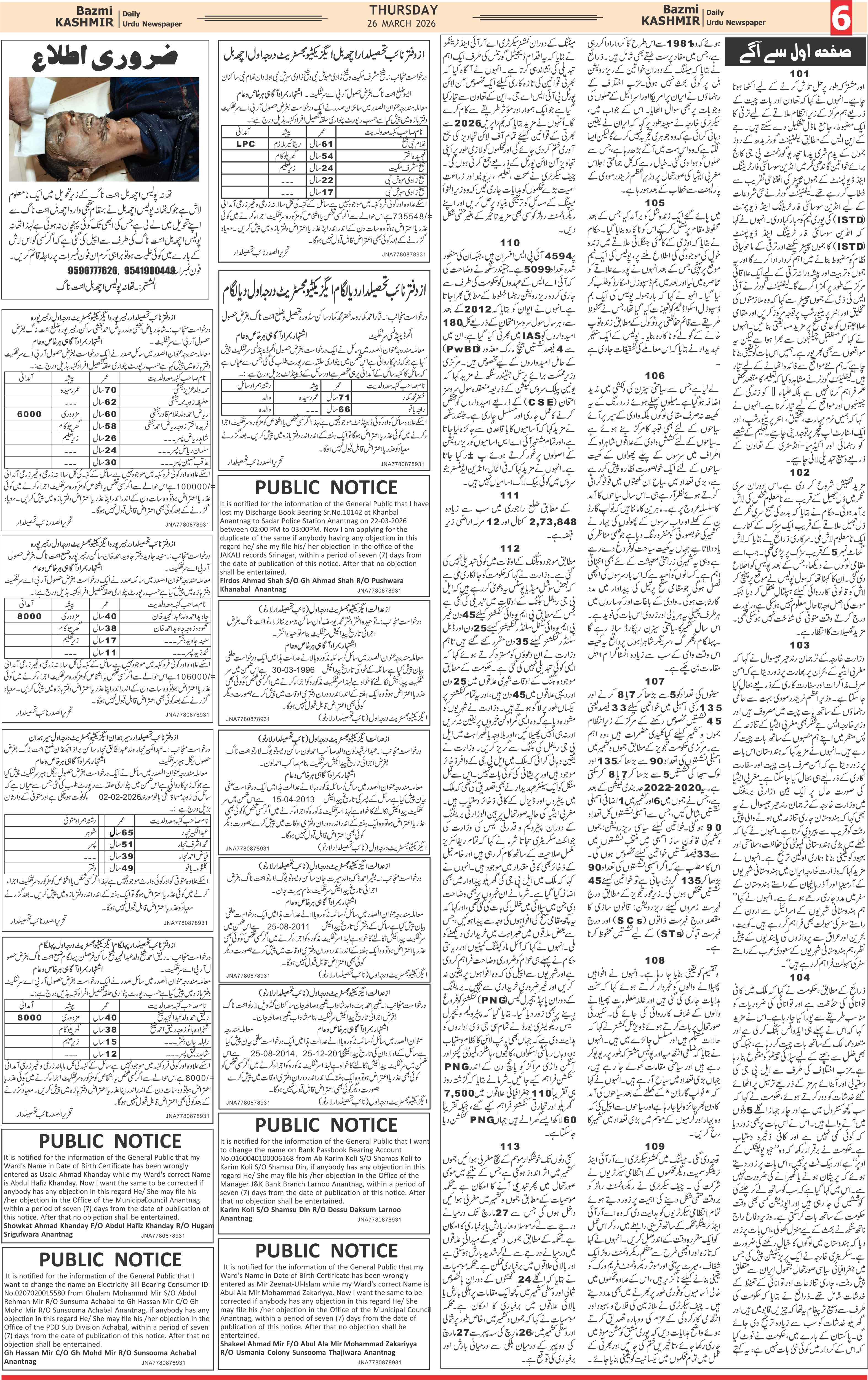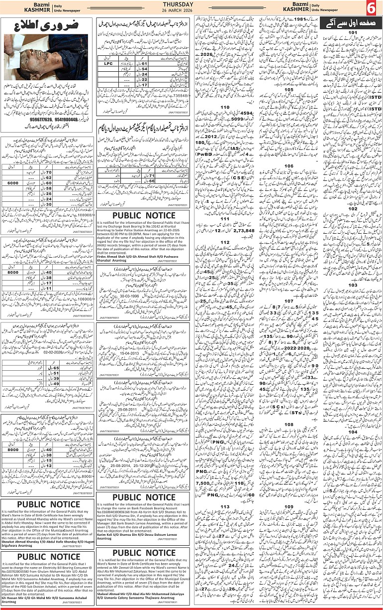 Bazam Kashmir Page: 6 March 26, 2026 << First << 6 >> Last >> Page 1Page 2Page 3Page 4Page 5Page 6Page 7Page 8 × Bazam Kashmir B -6 B -1B -2B -3B -4B -5B -6B -7B -8