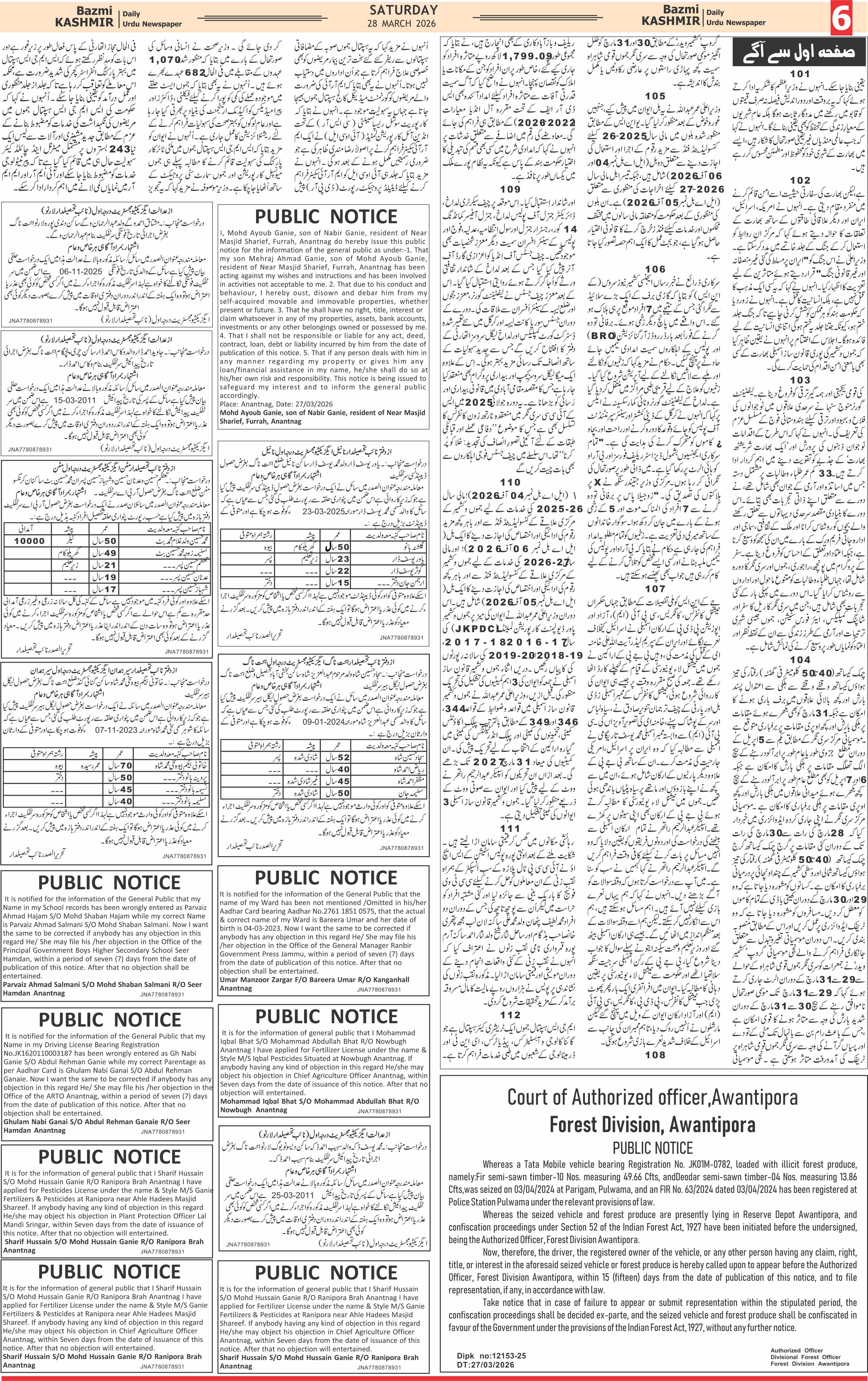 Bazam Kashmir Page: 6 March 28, 2026 << First << 6 >> Last >> Page 1Page 2Page 3Page 4Page 5Page 6Page 7Page 8 × Bazam Kashmir B -6 B -1B -2B -3B -4B -5B -6B -7B -8