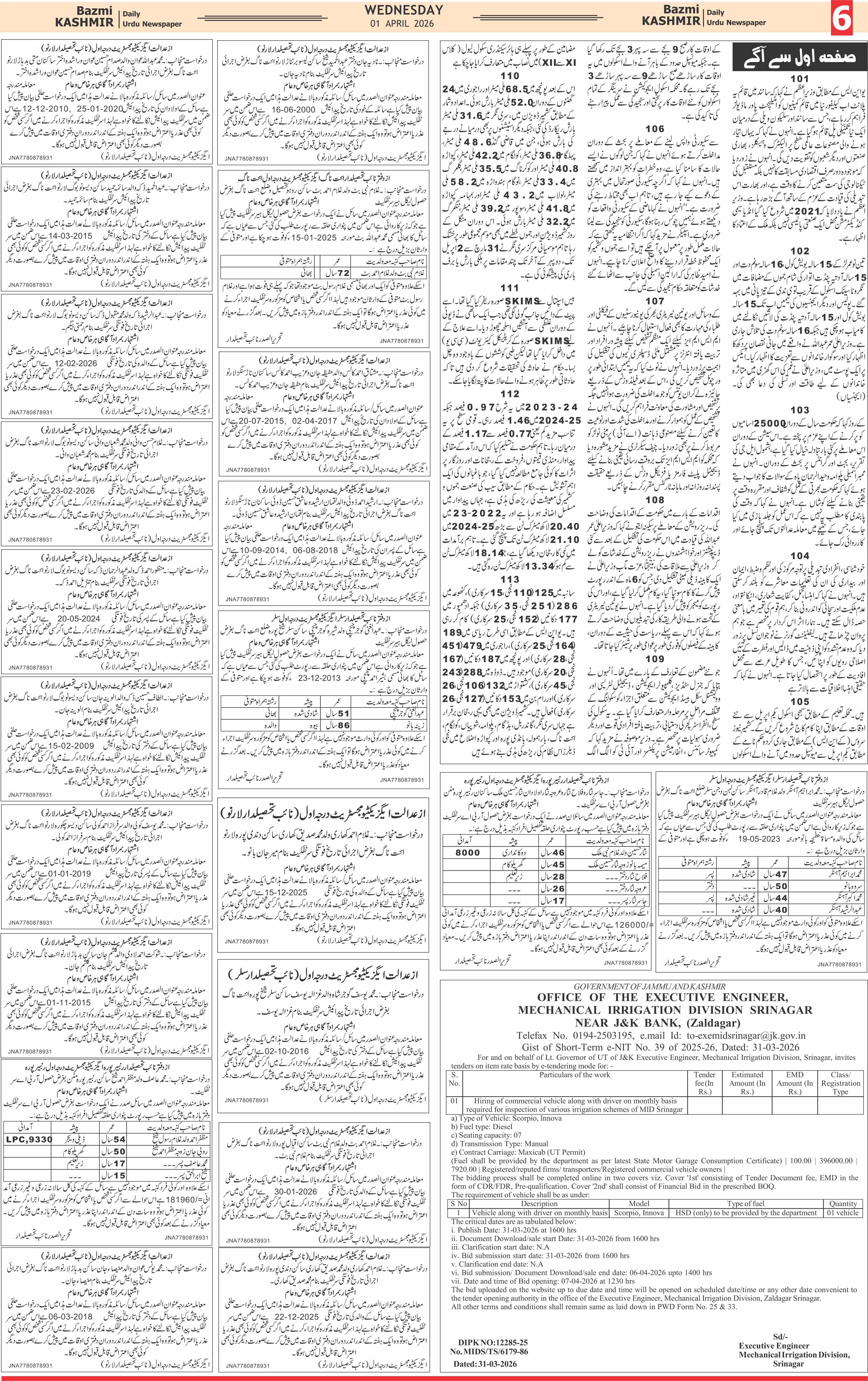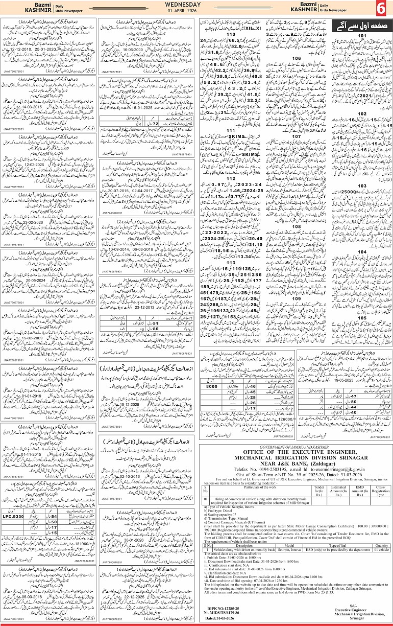 Bazam Kashmir Page: 6 April 01, 2026 << First << 6 >> Last >> Page 1Page 2Page 3Page 4Page 5Page 6Page 7Page 8 × Bazam Kashmir B -6 B -1B -2B -3B -4B -5B -6B -7B -8
