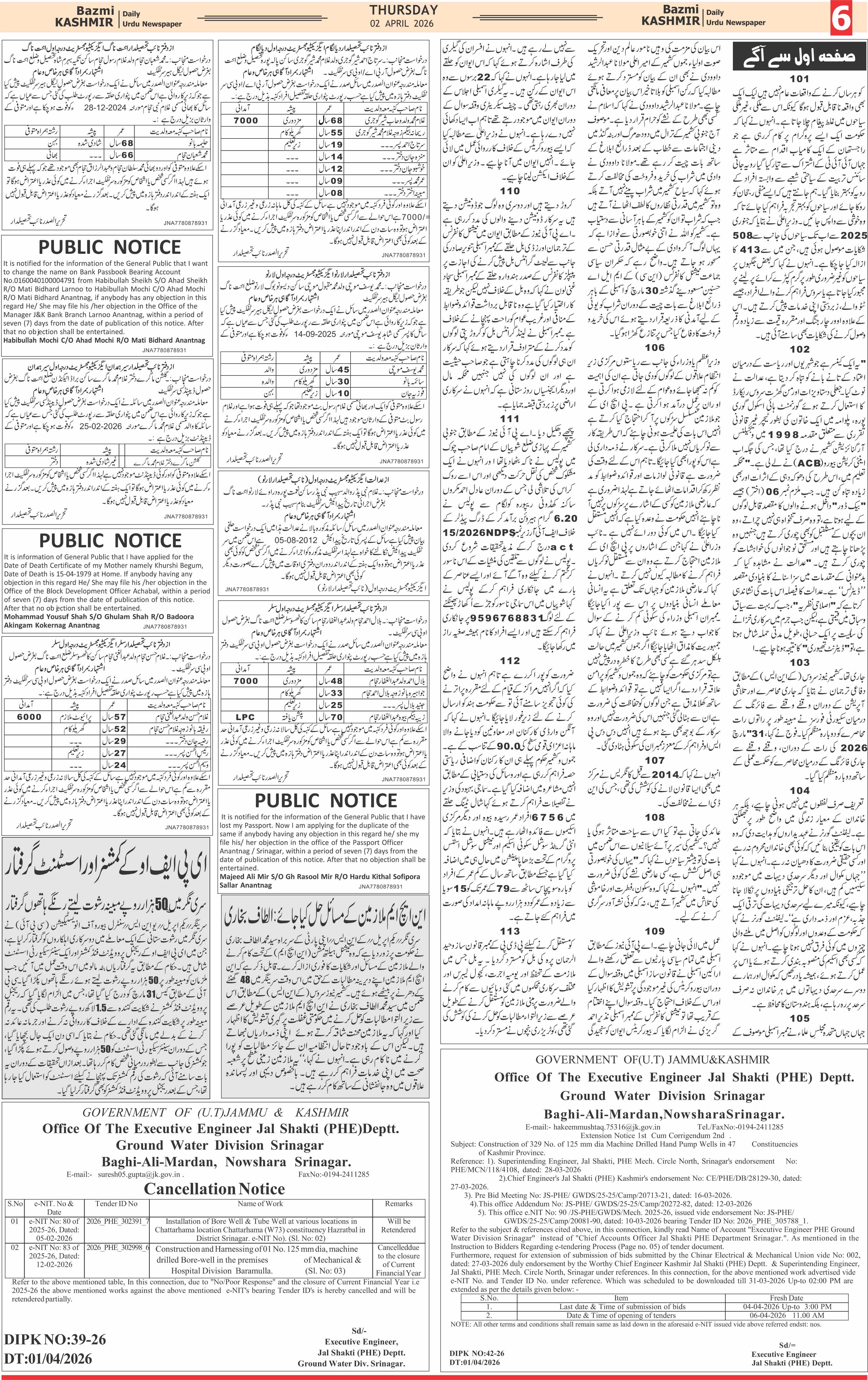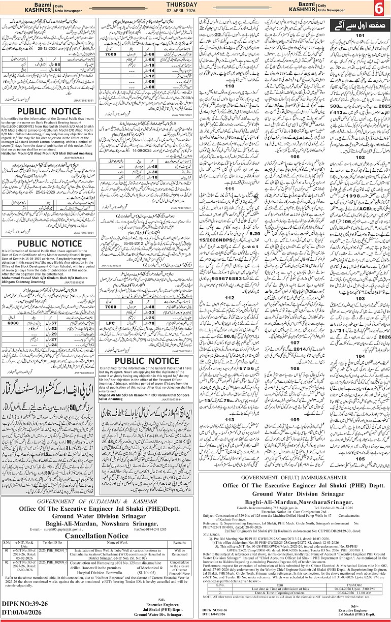 Bazam Kashmir Page: 6 April 02, 2026 << First << 6 >> Last >> Page 1Page 2Page 3Page 4Page 5Page 6Page 7Page 8 × Bazam Kashmir B -6 B -1B -2B -3B -4B -5B -6B -7B -8
