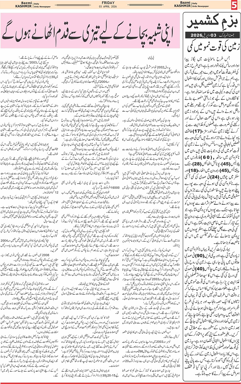 Bazam Kashmir Page: 5 April 03, 2026 << First << 5 >> Last >> Page 1Page 2Page 3Page 4Page 5Page 6Page 7Page 8 × Bazam Kashmir B -5 B -1B -2B -3B -4B -5B -6B -7B -8