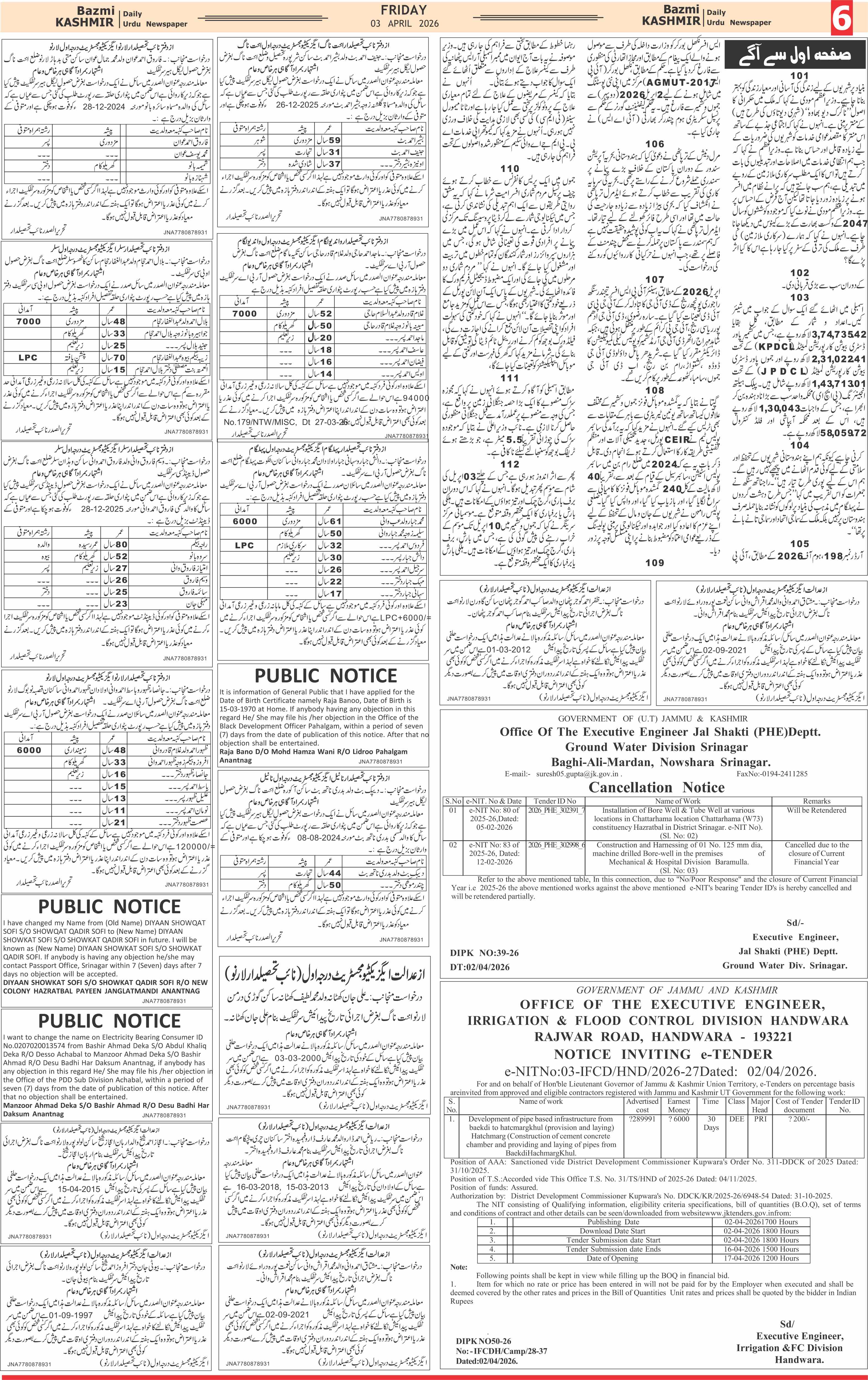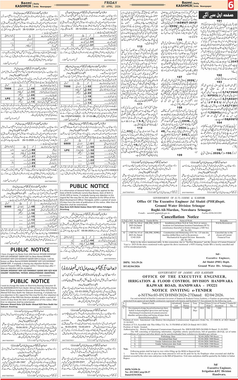 Bazam Kashmir Page: 6 April 03, 2026 << First << 6 >> Last >> Page 1Page 2Page 3Page 4Page 5Page 6Page 7Page 8 × Bazam Kashmir B -6 B -1B -2B -3B -4B -5B -6B -7B -8