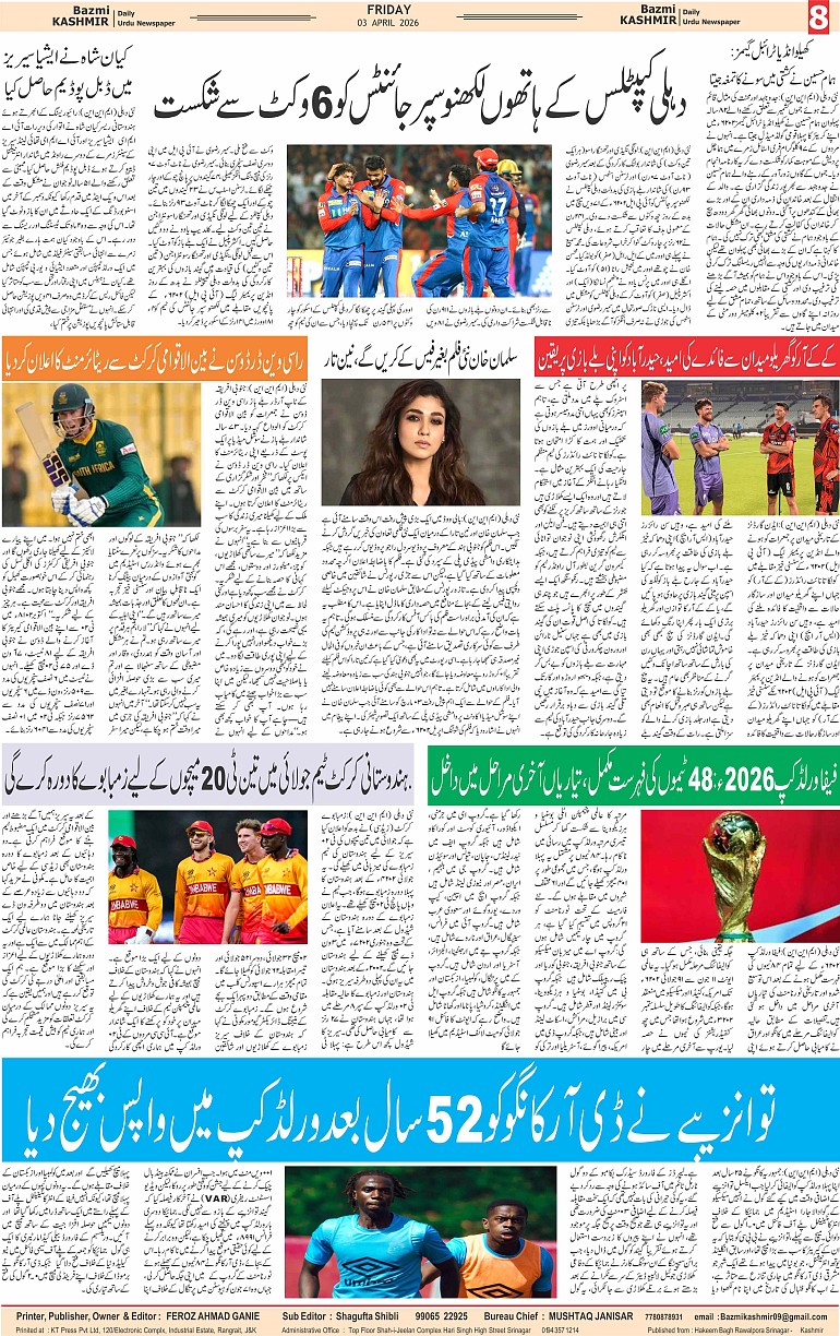 Bazam Kashmir Page: 8 April 03, 2026 << First << 8 >> Last >> Page 1Page 2Page 3Page 4Page 5Page 6Page 7Page 8 × Bazam Kashmir B -8 B -1B -2B -3B -4B -5B -6B -7B -8