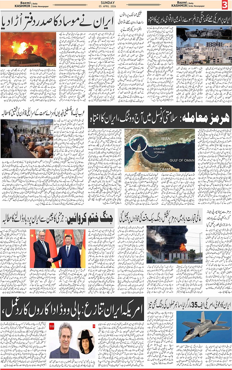 Bazam Kashmir Page: 3 April 05, 2026 << First << 3 >> Last >> Page 1Page 2Page 3Page 4Page 5Page 6Page 7Page 8 × Bazam Kashmir B -3 B -1B -2B -3B -4B -5B -6B -7B -8