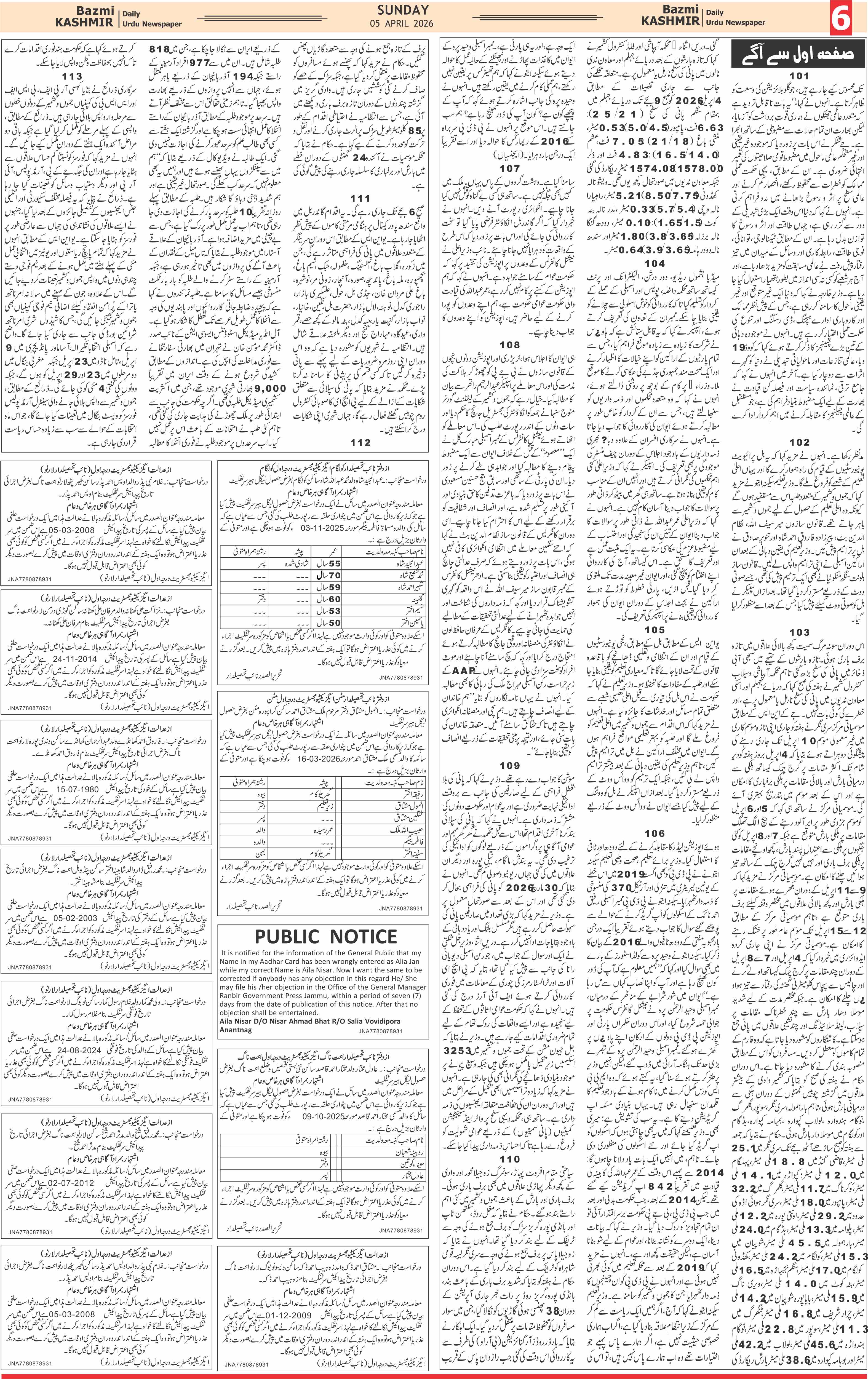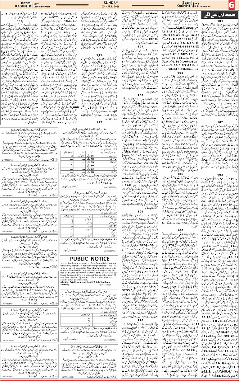 Bazam Kashmir Page: 6 April 05, 2026 << First << 6 >> Last >> Page 1Page 2Page 3Page 4Page 5Page 6Page 7Page 8 × Bazam Kashmir B -6 B -1B -2B -3B -4B -5B -6B -7B -8