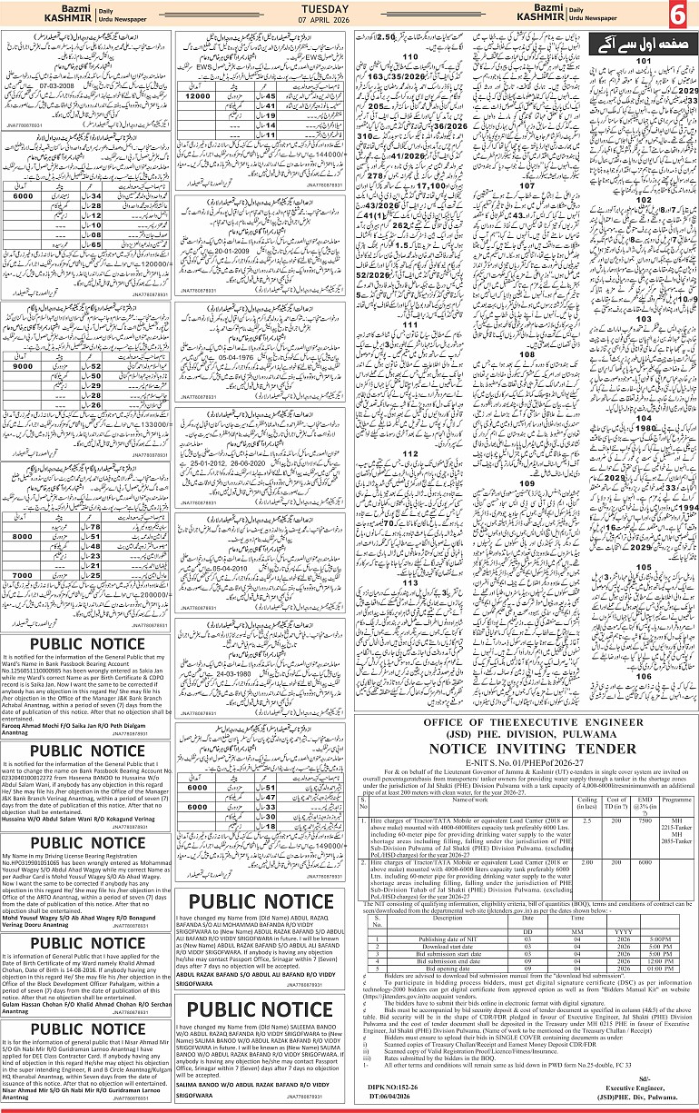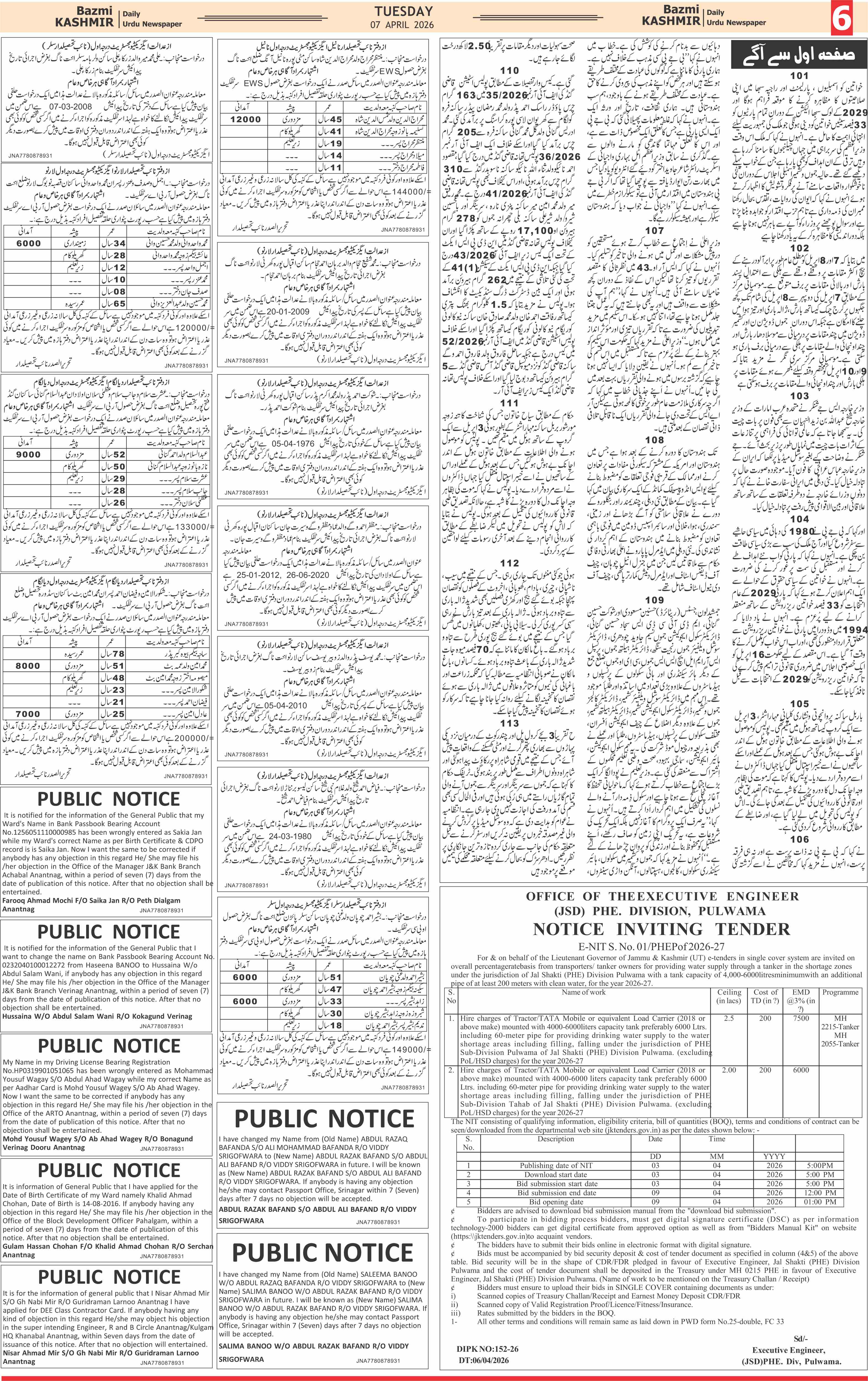 Bazam Kashmir Page: 6 April 07, 2026 << First << 6 >> Last >> Page 1Page 2Page 3Page 4Page 5Page 6Page 7Page 8 × Bazam Kashmir B -6 B -1B -2B -3B -4B -5B -6B -7B -8