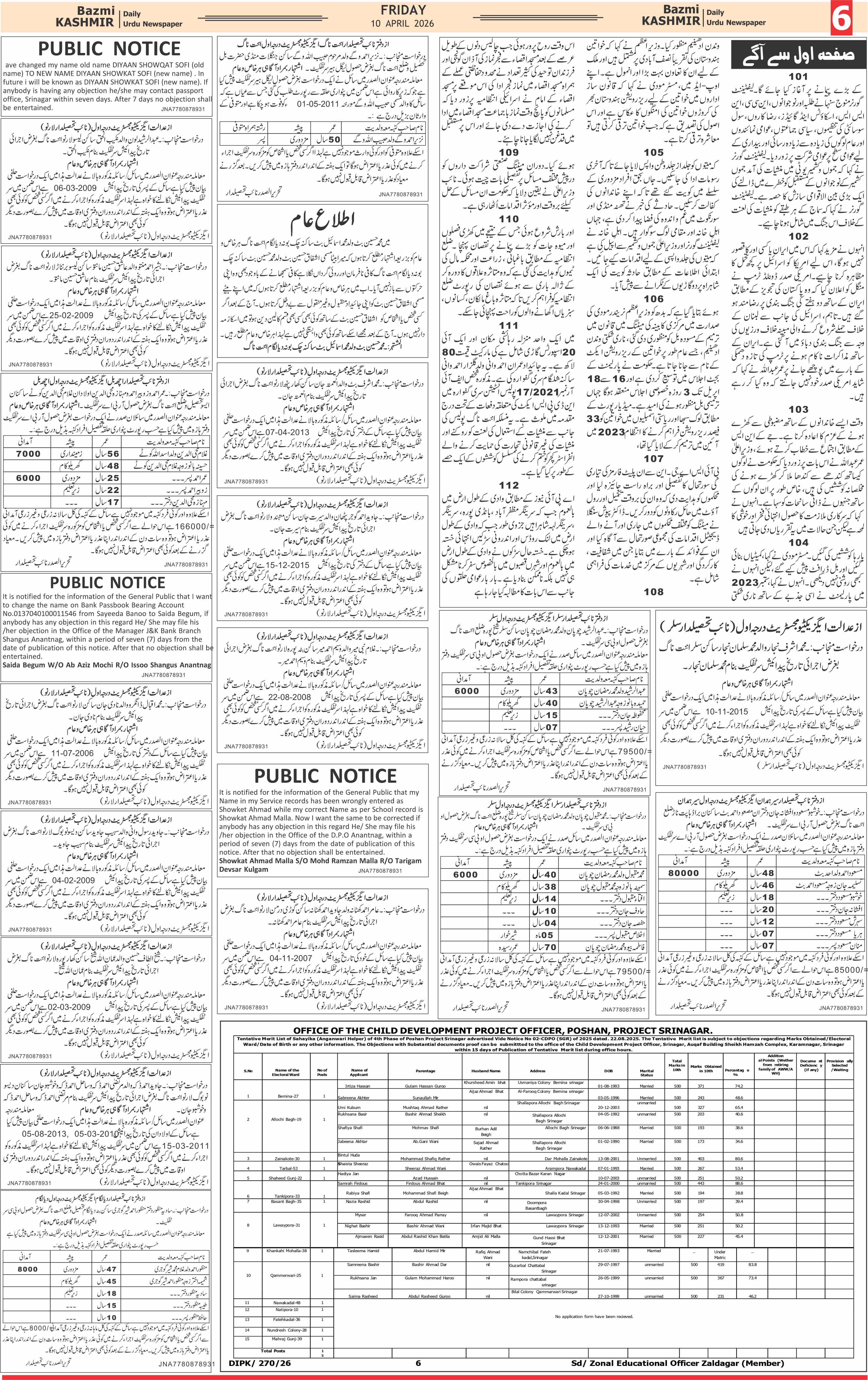 Bazam Kashmir Page: 6 April 10, 2026 << First << 6 >> Last >> Page 1Page 2Page 3Page 4Page 5Page 6Page 7Page 8 × Bazam Kashmir B -6 B -1B -2B -3B -4B -5B -6B -7B -8