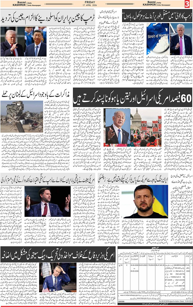 Bazam Kashmir Page: 3 April 17, 2026 << First << 3 >> Last >> Page 1Page 2Page 3Page 4Page 5Page 6Page 7Page 8 × Bazam Kashmir B -3 B -1B -2B -3B -4B -5B -6B -7B -8