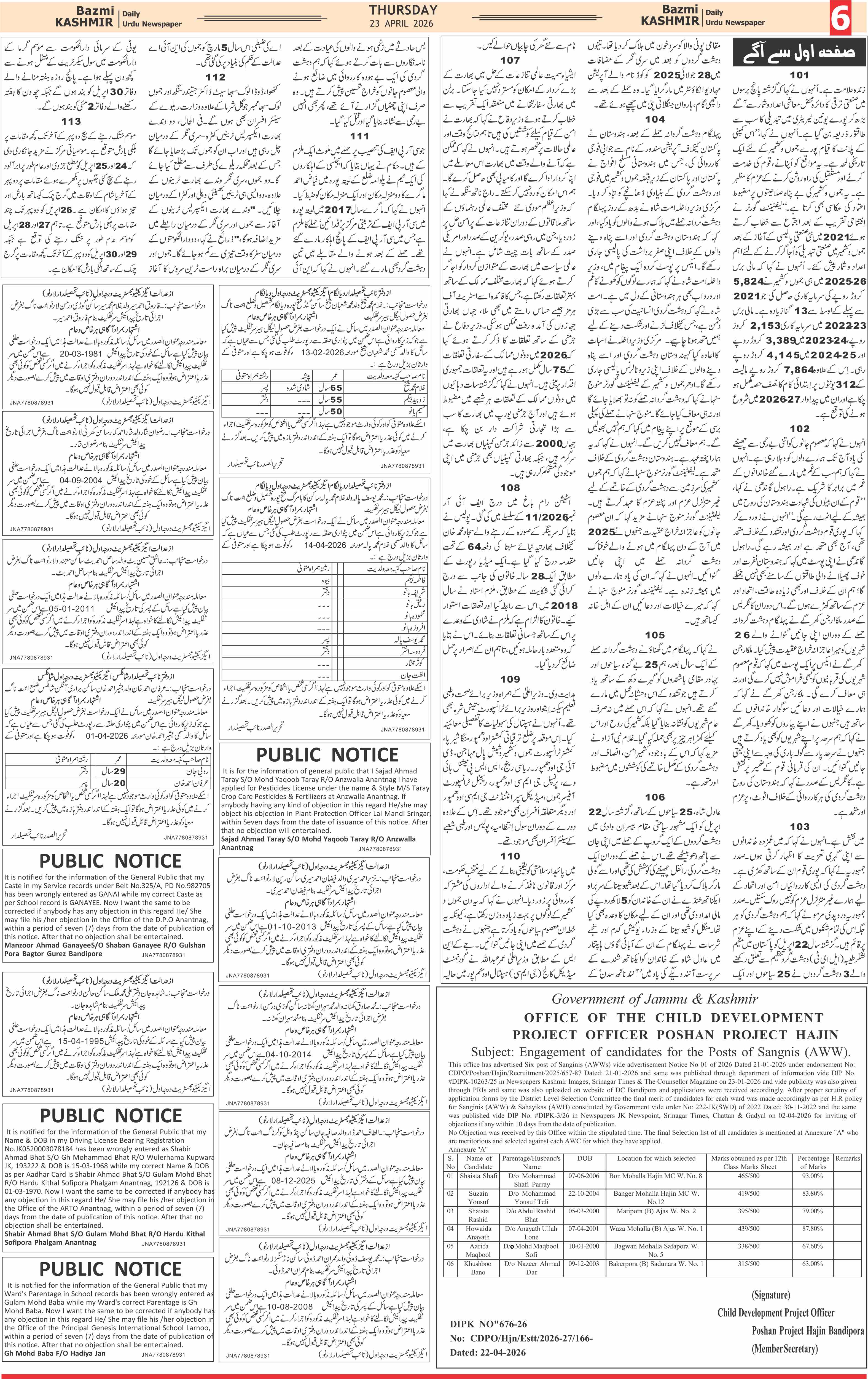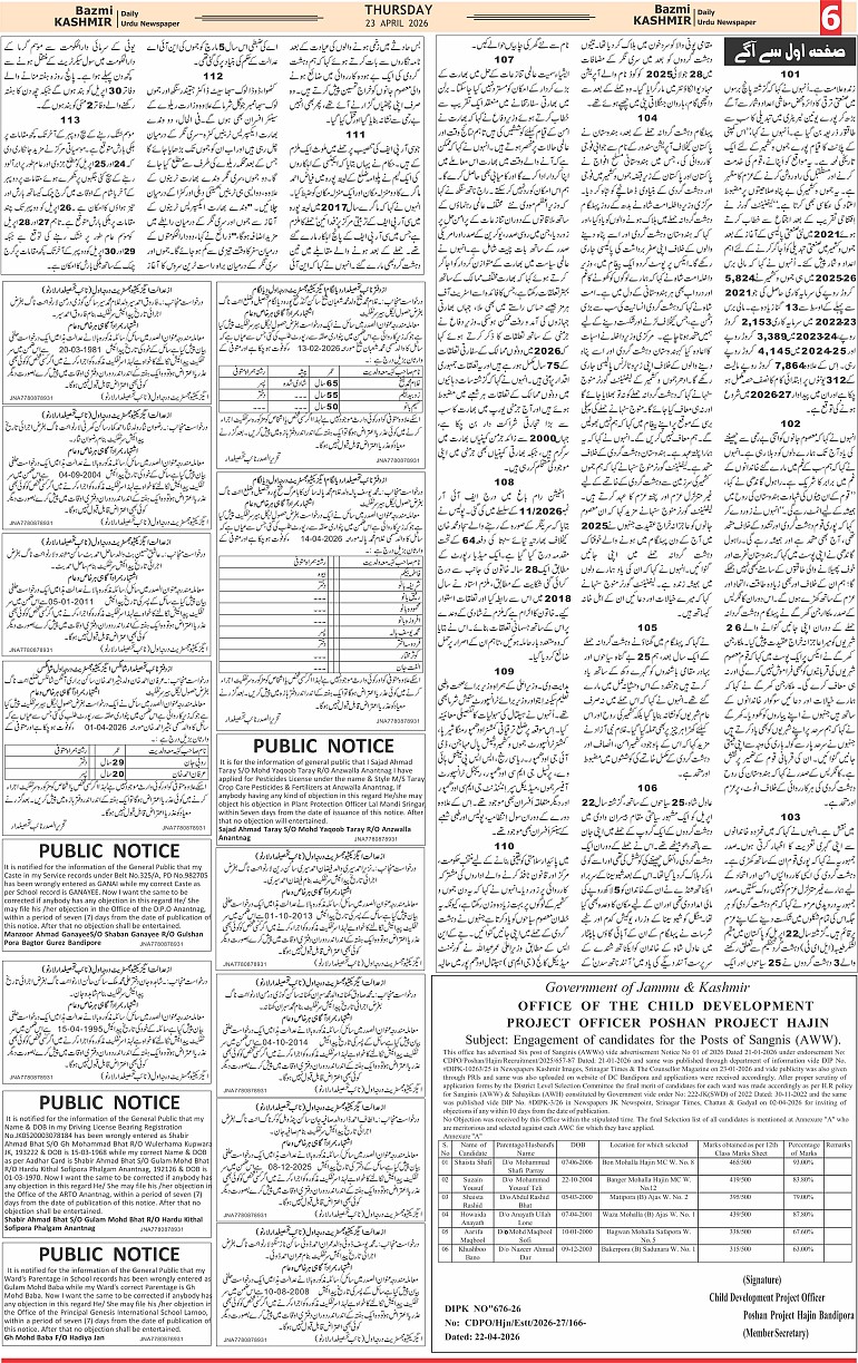 Bazam Kashmir Page: 6 April 23, 2026 << First << 6 >> Last >> Page 1Page 2Page 3Page 4Page 5Page 6Page 7Page 8 × Bazam Kashmir B -6 B -1B -2B -3B -4B -5B -6B -7B -8