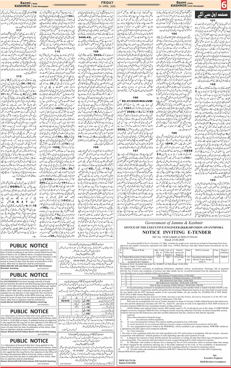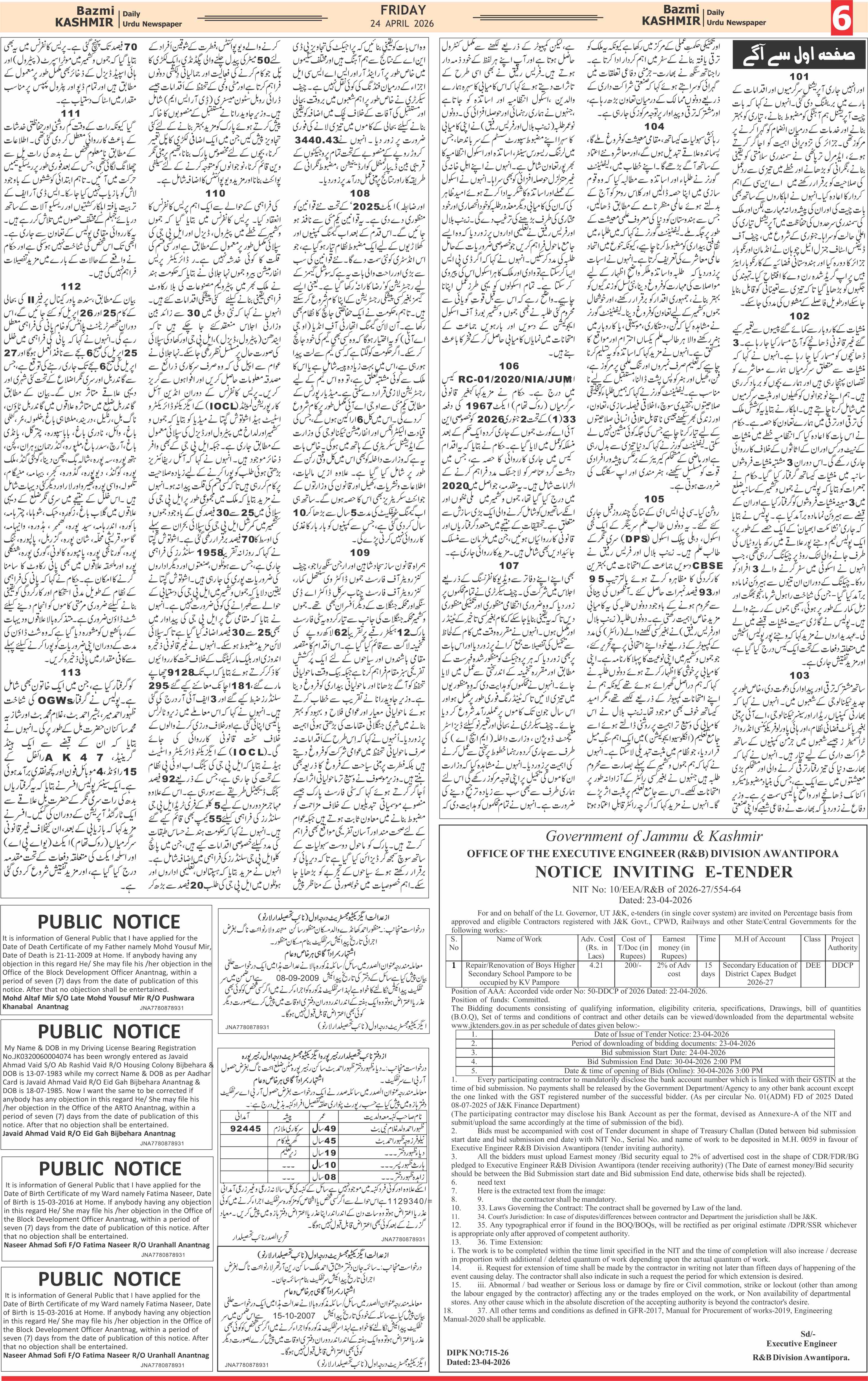 Bazam Kashmir Page: 6 April 24, 2026 << First << 6 >> Last >> Page 1Page 2Page 3Page 4Page 5Page 6Page 7Page 8 × Bazam Kashmir B -6 B -1B -2B -3B -4B -5B -6B -7B -8