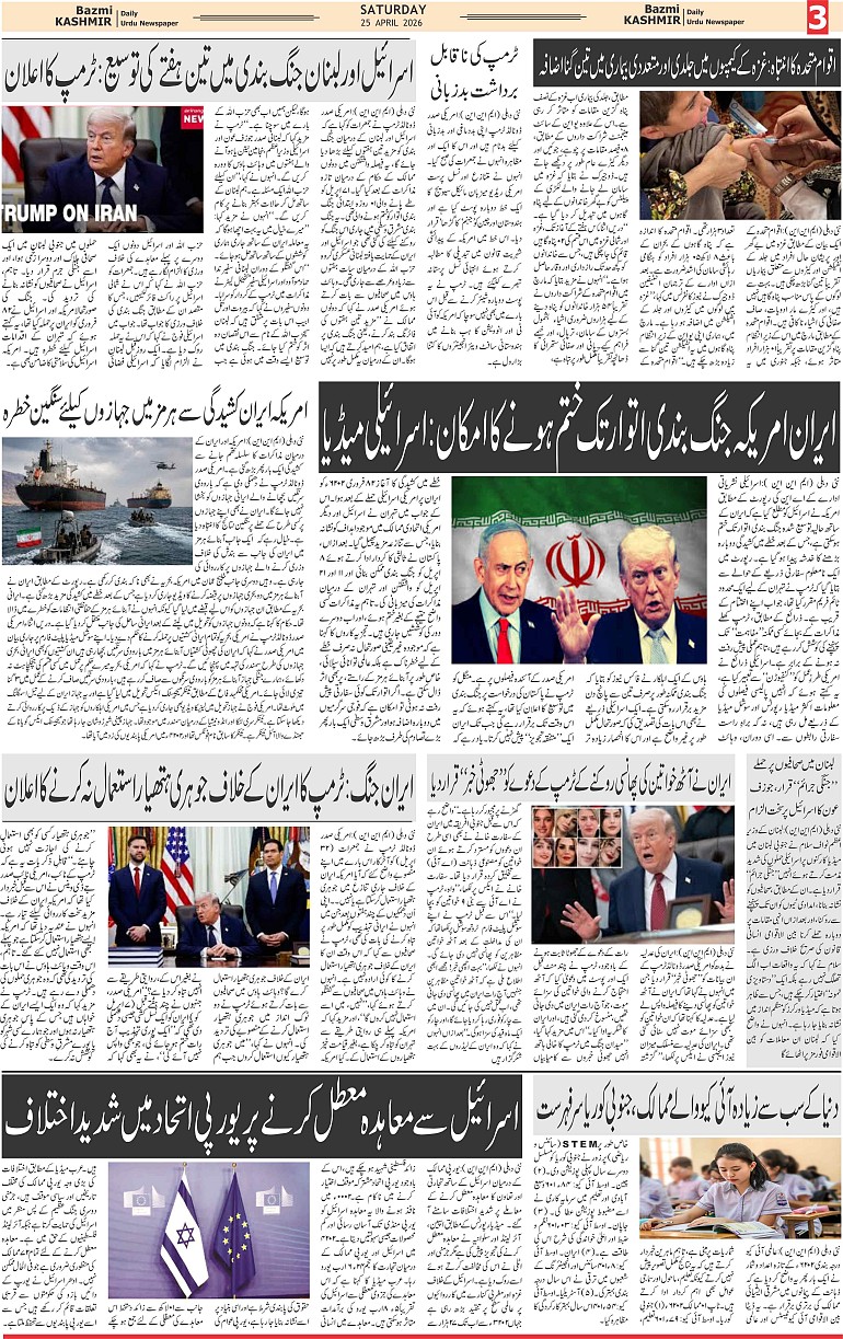 Bazam Kashmir Page: 3 April 25, 2026 << First << 3 >> Last >> Page 1Page 2Page 3Page 4Page 5Page 6Page 7Page 8 × Bazam Kashmir B -3 B -1B -2B -3B -4B -5B -6B -7B -8