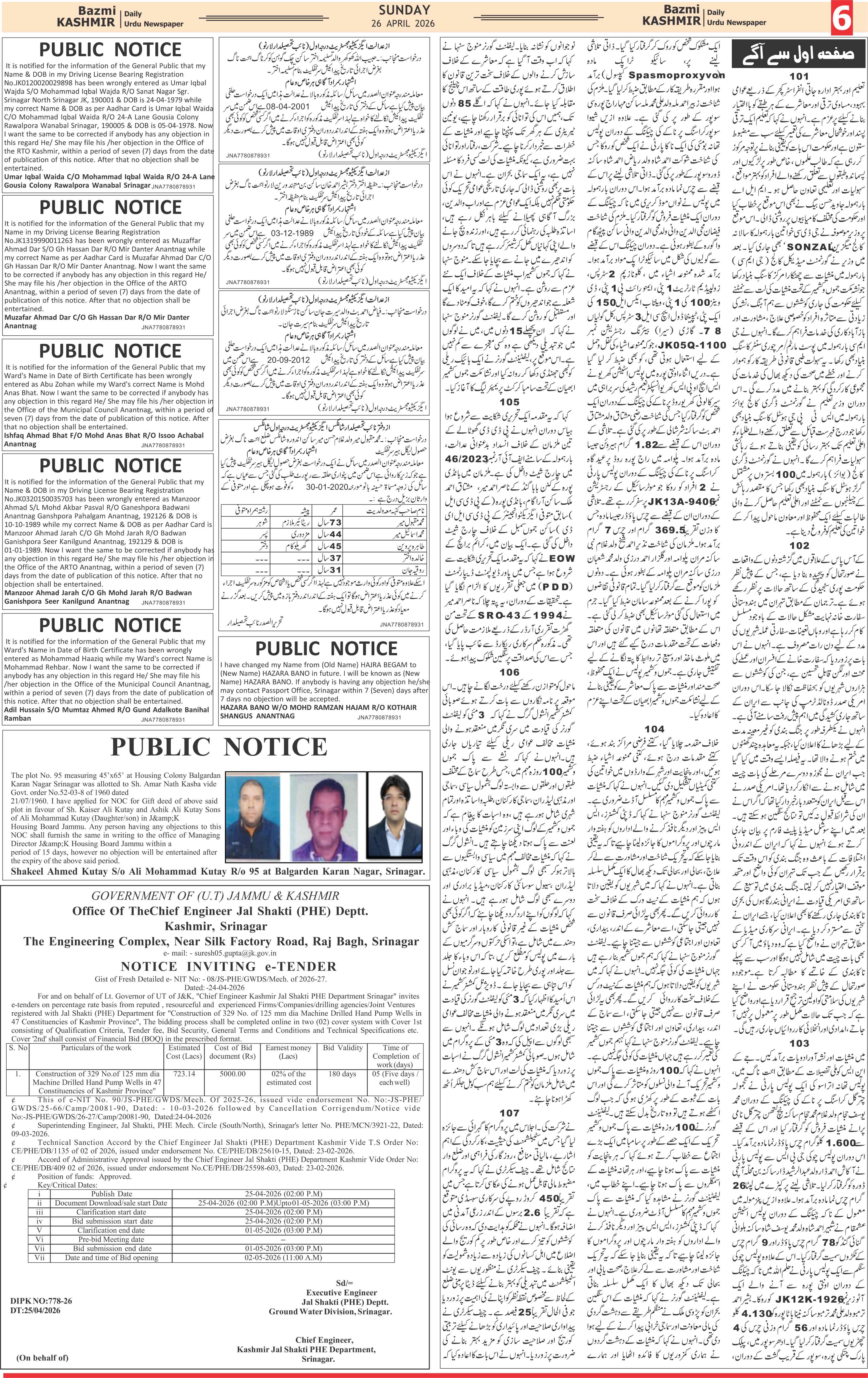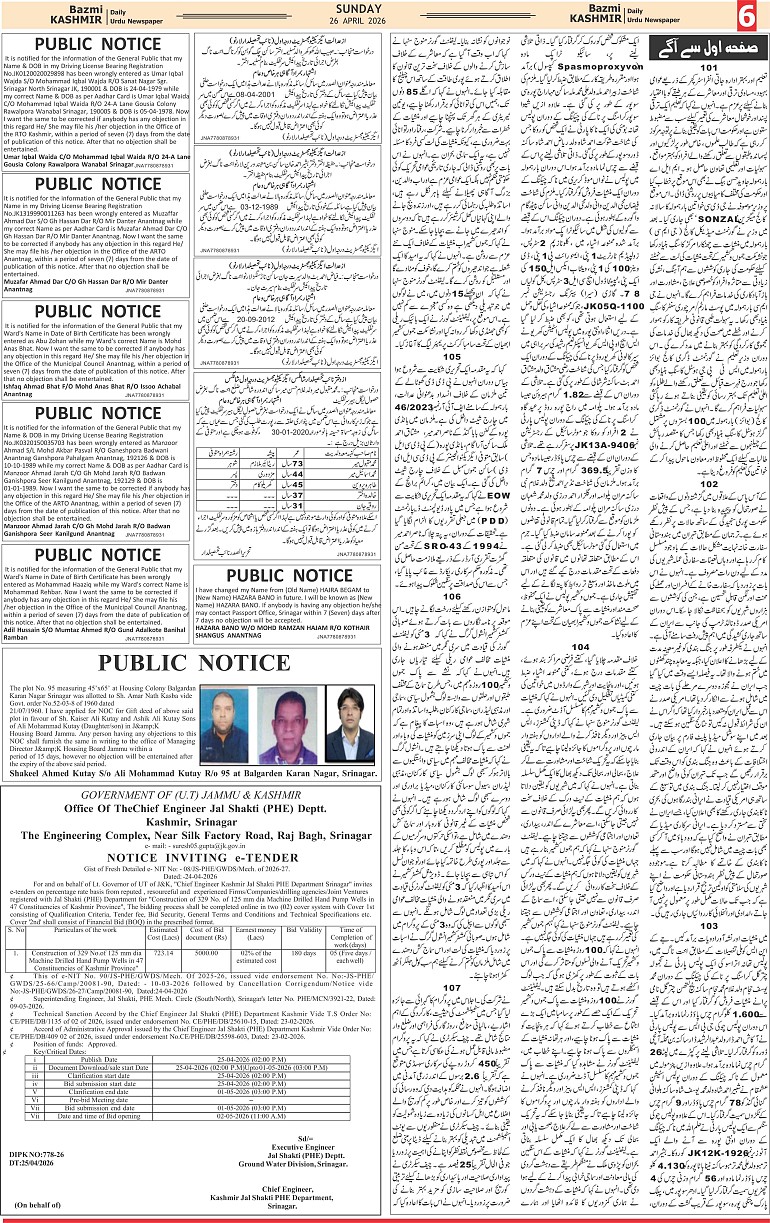 Bazam Kashmir Page: 6 April 26, 2026 << First << 6 >> Last >> Page 1Page 2Page 3Page 4Page 5Page 6Page 7Page 8 × Bazam Kashmir B -6 B -1B -2B -3B -4B -5B -6B -7B -8