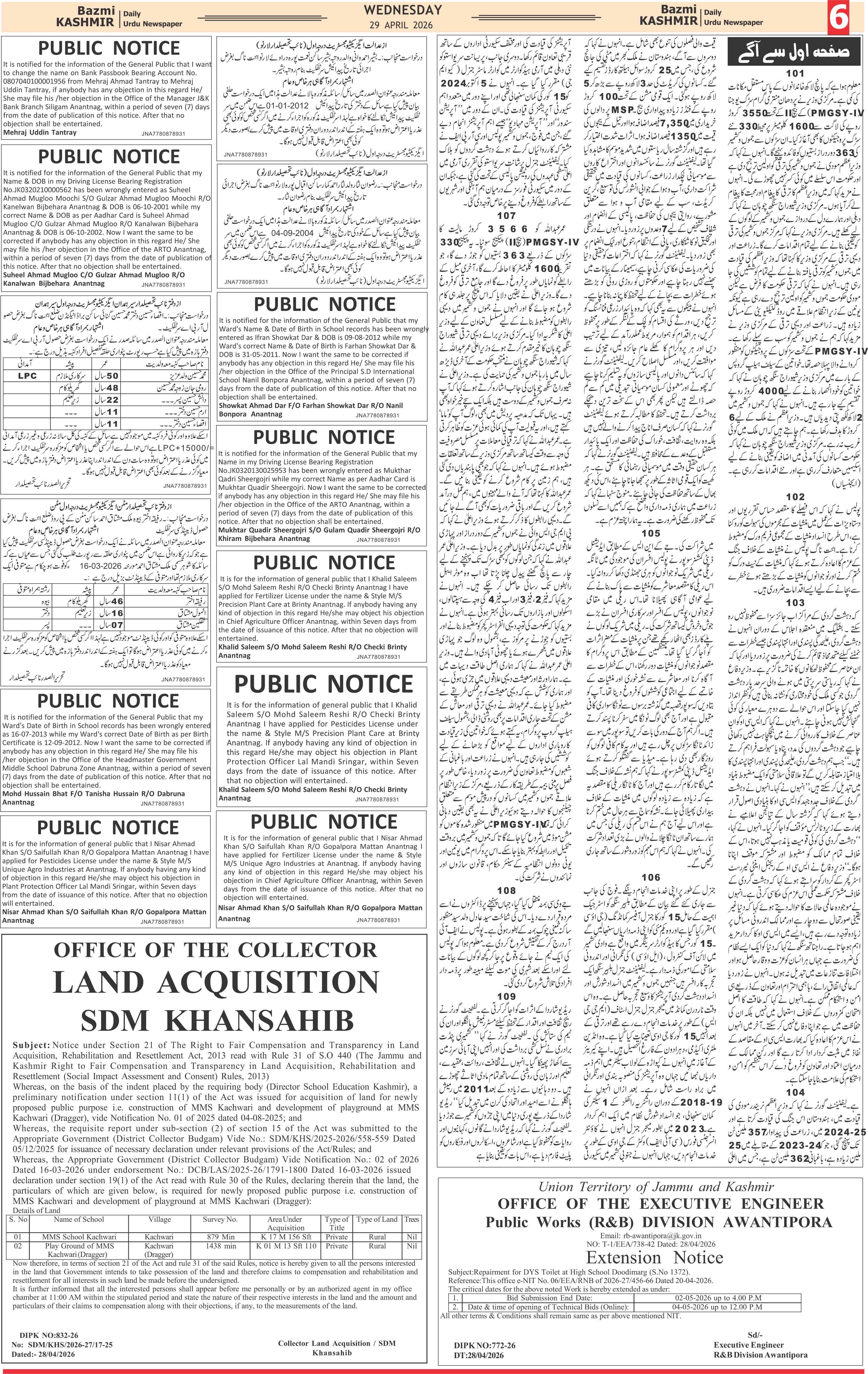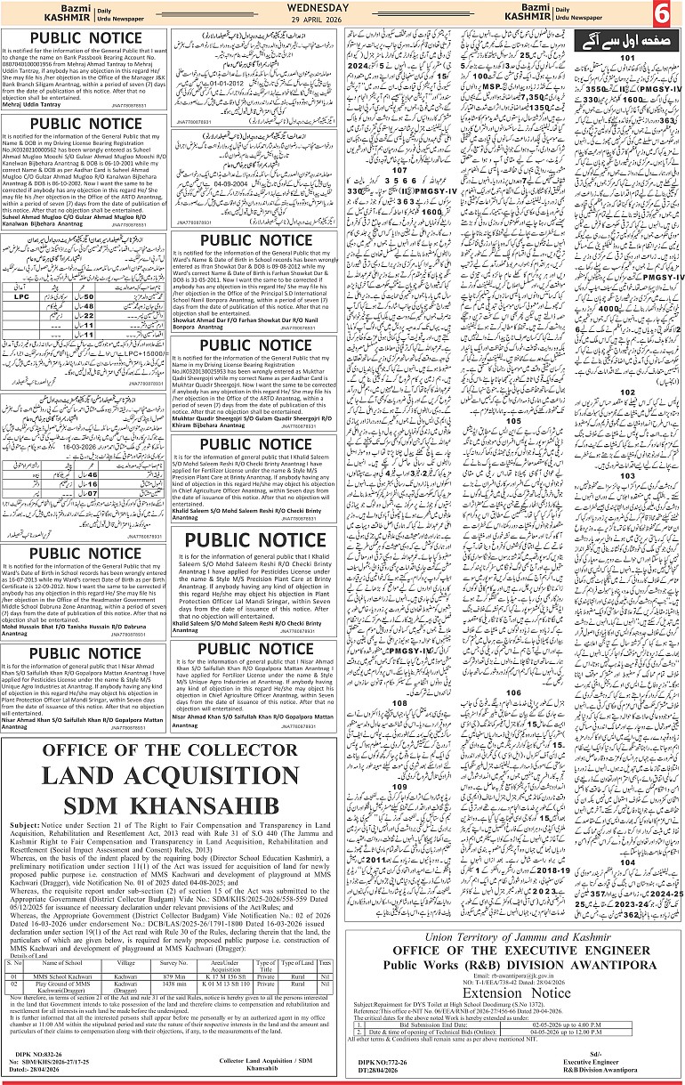 Bazam Kashmir Page: 6 April 29, 2026 << First << 6 >> Last >> Page 1Page 2Page 3Page 4Page 5Page 6Page 7Page 8 × Bazam Kashmir B -6 B -1B -2B -3B -4B -5B -6B -7B -8
